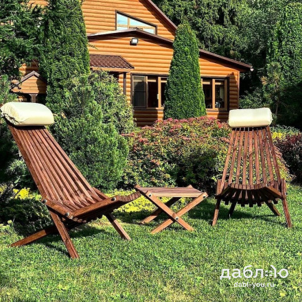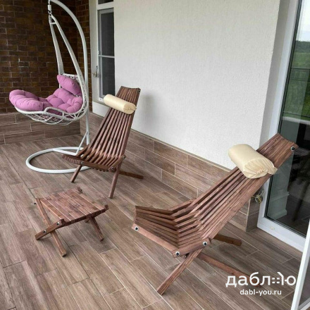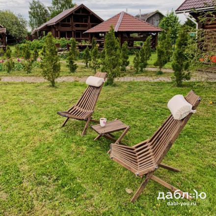 Комплект мебели Relax Concretika. Коллекция Relax предназначена как для сада, так и для домашнего использования (бани, сауны, веранды). В саду чаще всего эти кресла используют для создания зон отдыха вокруг очага. Комплект состоит из 2-х складных кресел с подголовниками и складного столика.В комплекте: два кресла, две подушки и один столик