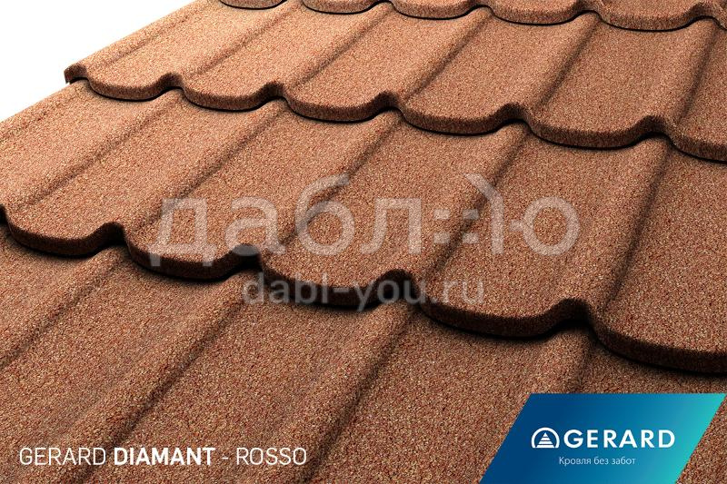 Композитная черепица Gerard Diamant Rosso, 1270х398 мм. При создании профиля Diamant использовался самый крепкий материал, поэтому эта черепица отличается особой прочностью и при этом экономит для Вас время на установку и расходы. Профиль представлен в 13 различных цветах, чтобы помочь подобрать максимально подходящий для Вас цвет.Размер: 1270х398 мм