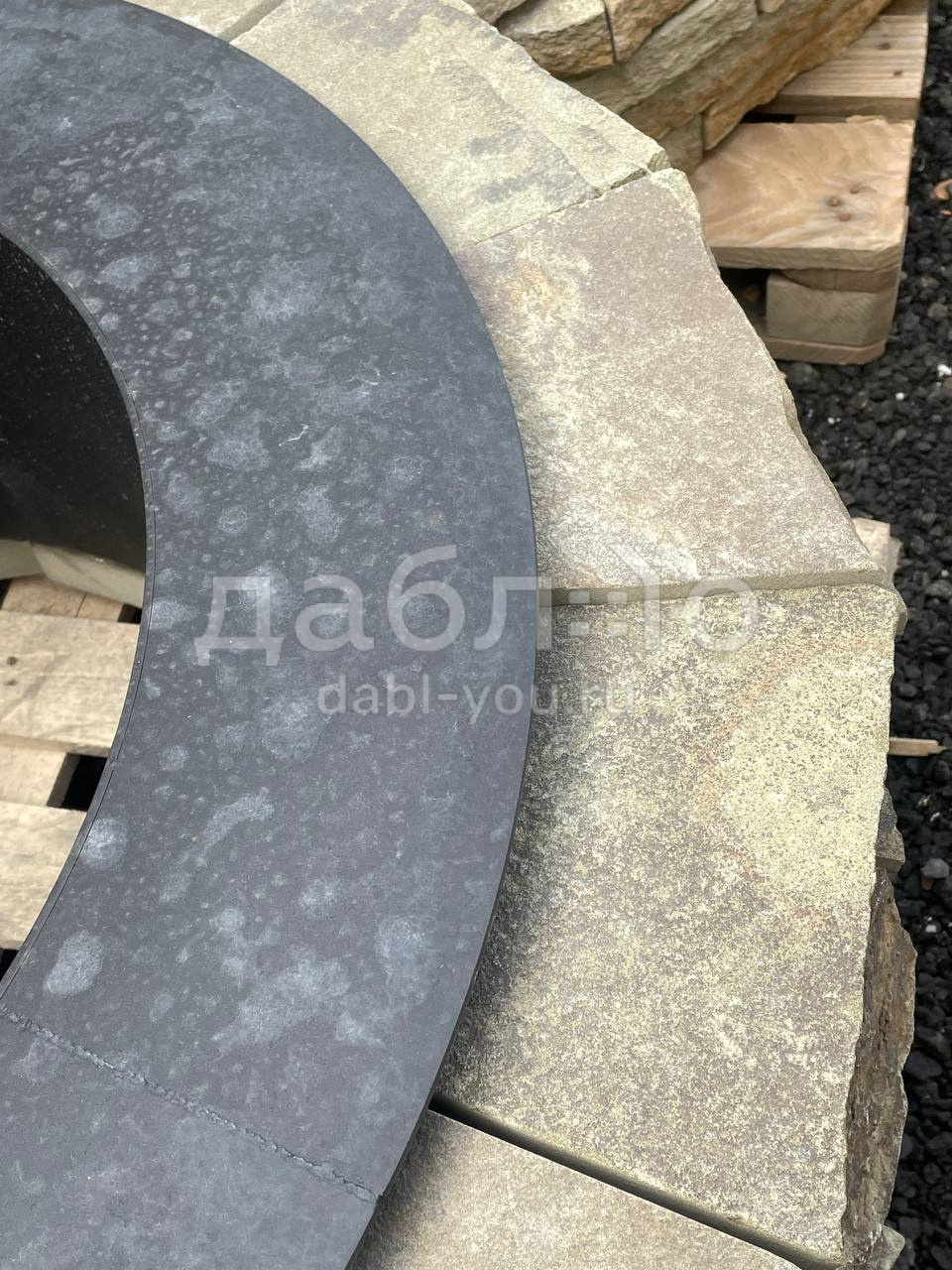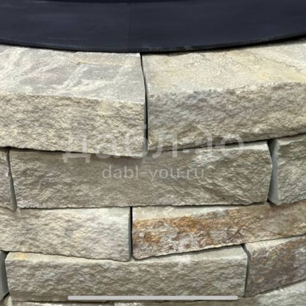 Костровая чаша из серо-зелёного песчаника с естественной фактурой и мягким природным оттенком. Спокойная цветовая гамма хорошо сочетается с растительностью и другими элементами садового оформления.Фактура: природная