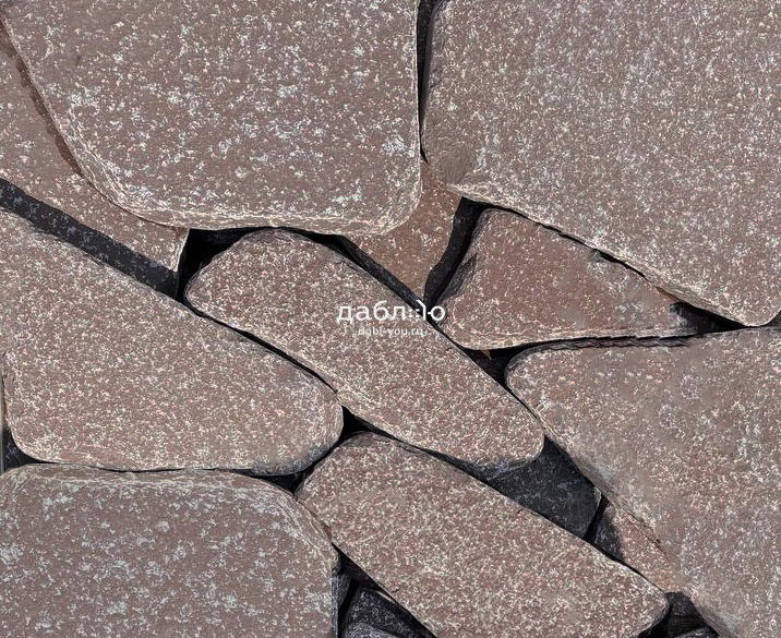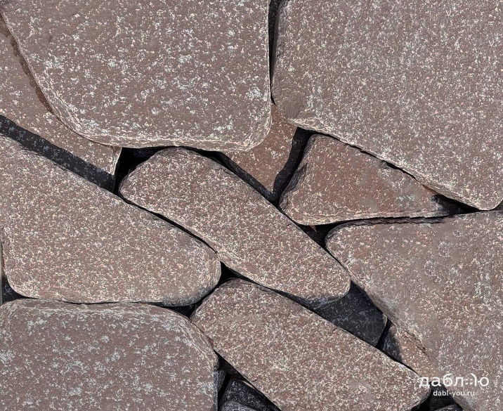 Лемезит рваный край галтованный 50 мм. Лемезит (мраморизованный строматолитовый известняк) – это тонкозернистый камень, который получил широкое применение в отделочных и облицовочных работах на фасадах домов, а так же при мощении земельных участков. Подойдет для мощения. С этим природным камнем Ваш дом будет выглядеть очень изящно и дорого. А цвет бордо несомненно оценят ценители настоящего французского вина, ведь камень передает именно его оттенки.- Вес: 100 кг/м2