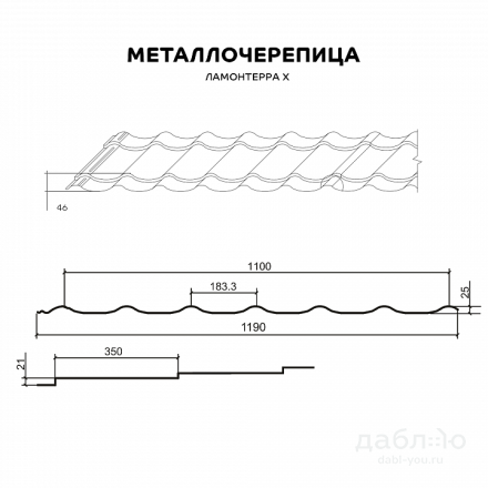 Металлочерепица Металл Профиль Ламонтерра X. Классический S-образный профиль глубиной 46 мм. У него асимметричные «набегающие» волны. Кровельный материал такой формы ― один из наиболее популярных на рынке. Уже много лет металлочерепица с таким профилем пользуется неизменным спросом.Черепица представлена в различных цветах и покрытиях.