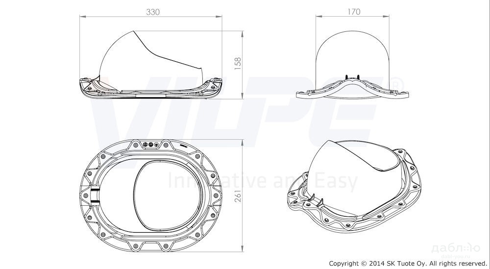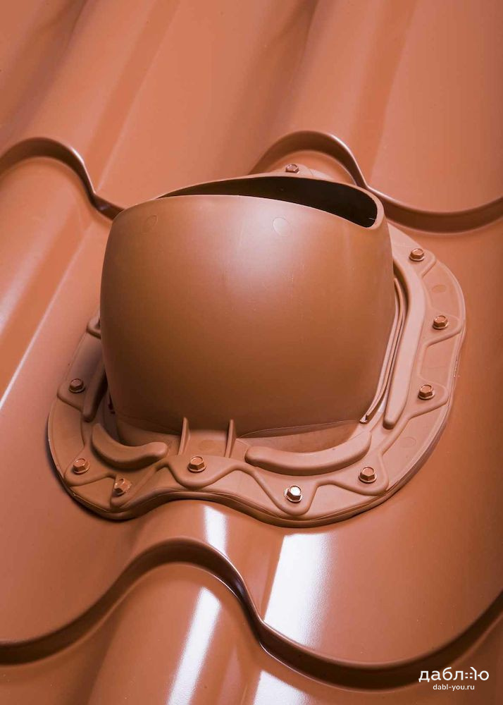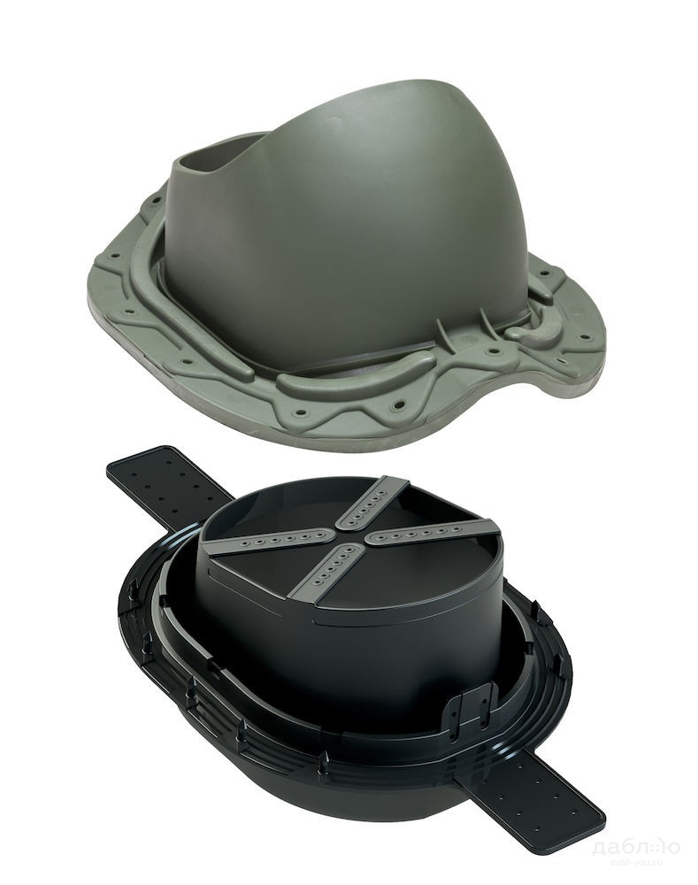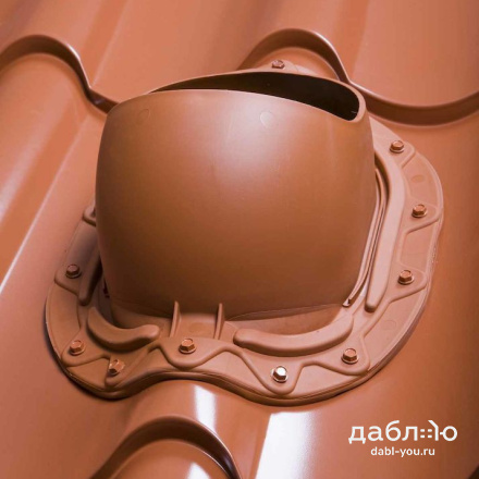 Muotokate проходной элемент для монтажа на металлических кровлях с профилем Monterrey (ширина волны 183,3 мм, длина профиля 350 мм и высота профиля около 39 мм) труб и вентиляторов диаметром 110 –160 мм и антенного ворота.Проходной элемент для металлочерепицы с профилем Monterrey. Устанавливается при монтаже и на готовую кровлю.