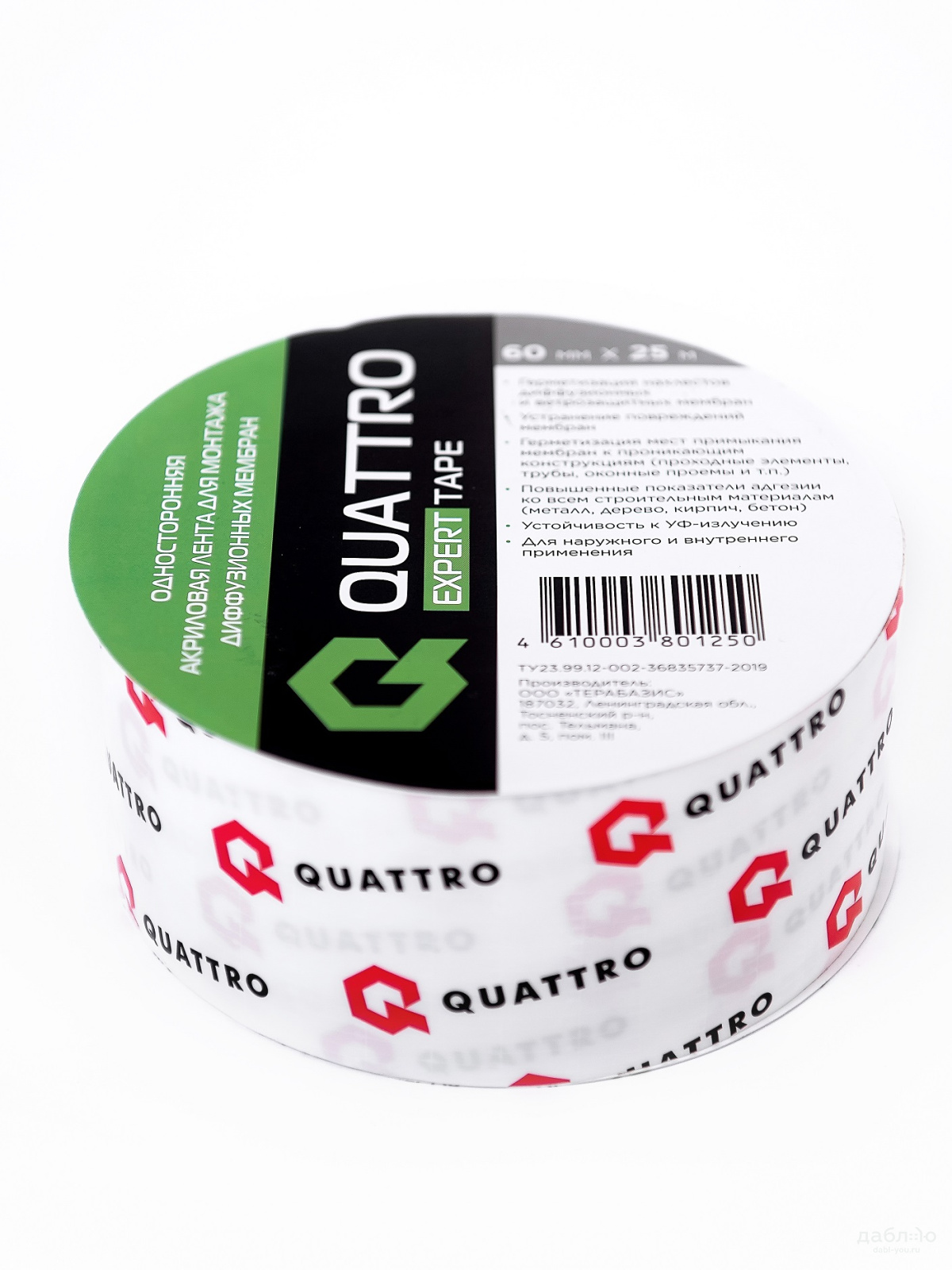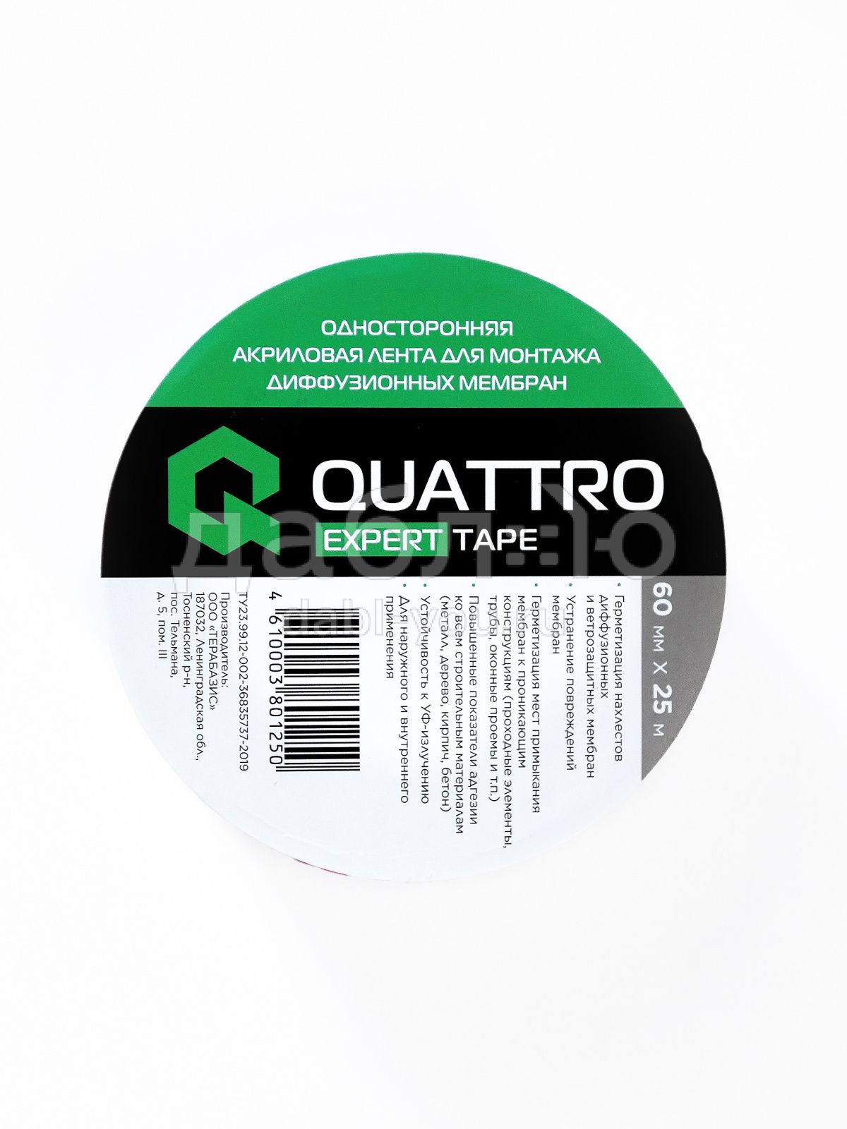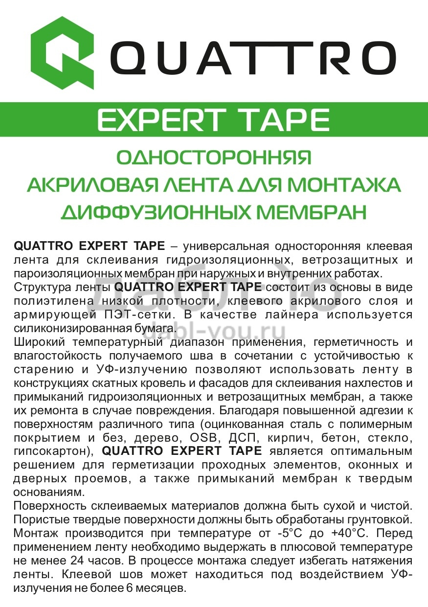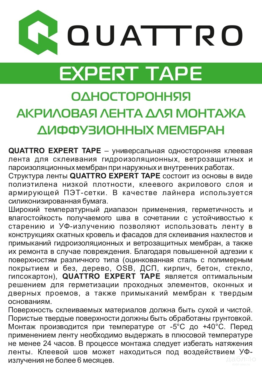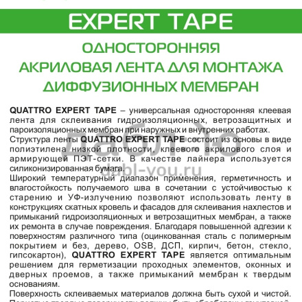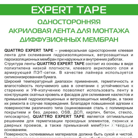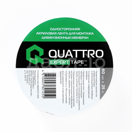 Односторонняя акриловая лента для монтажа диффузионных мембран Quattro Expert Tape.Герметизация нахлестов диффузионных и ветрозащитных мембран