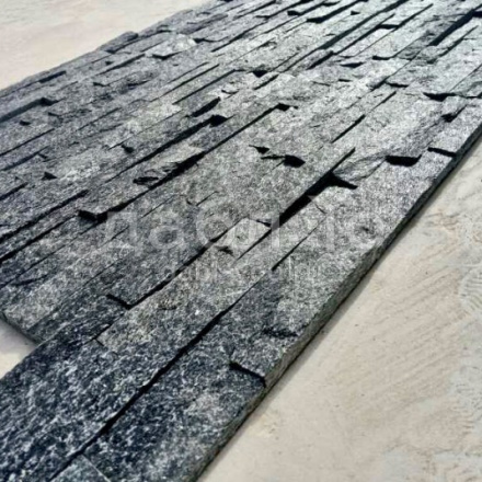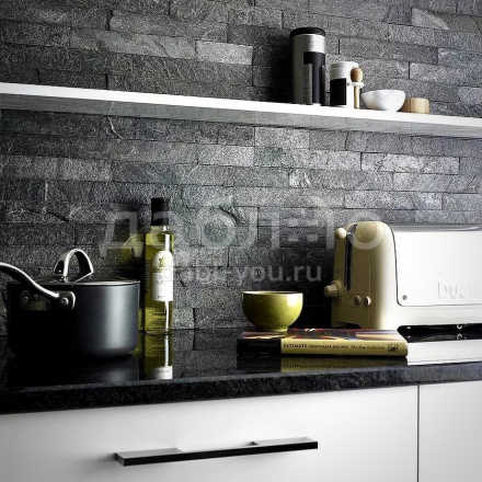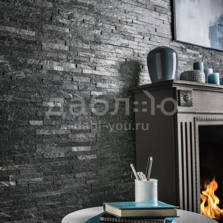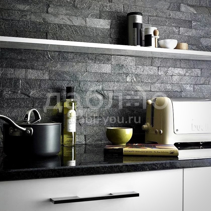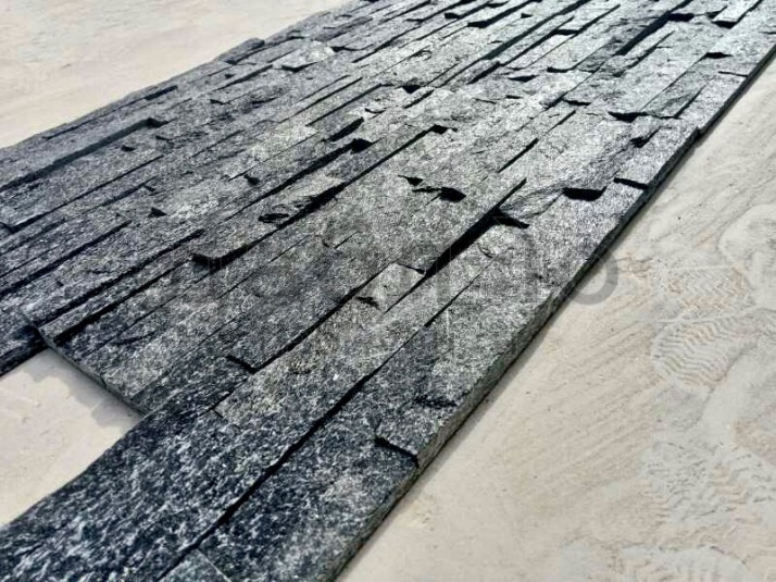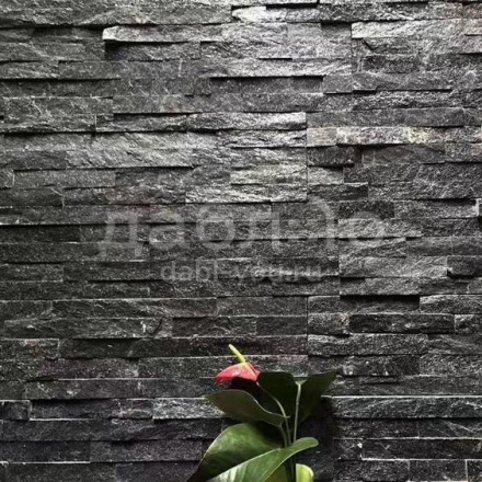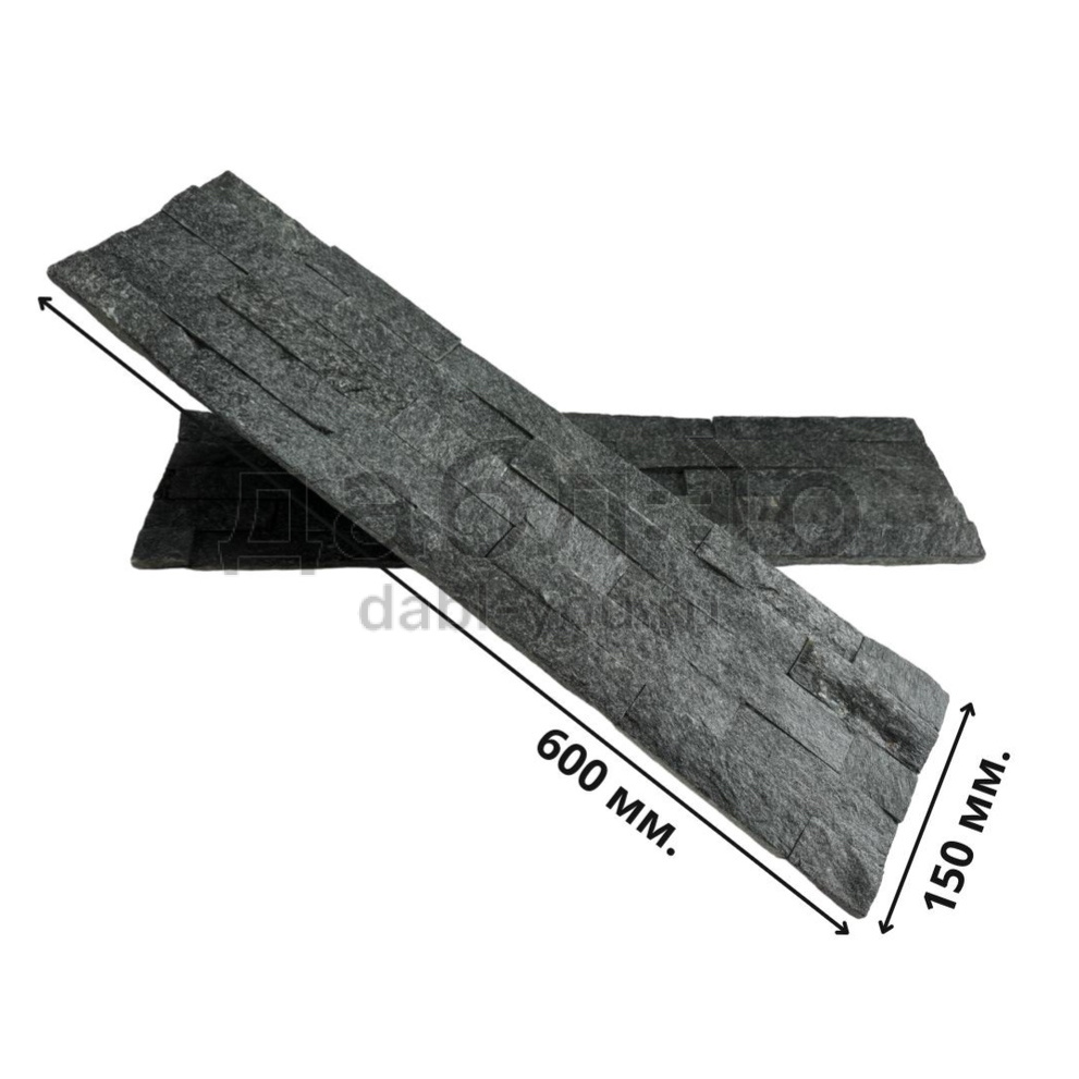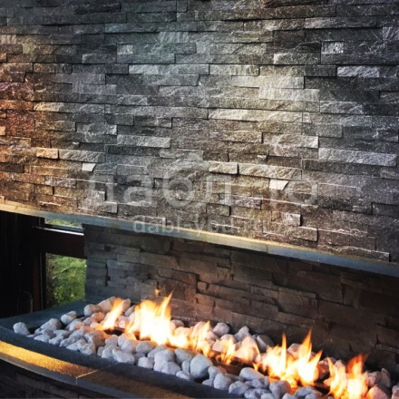 Панель из натурального камня Классик Кварцит черный. Данная панель представляет собой единую плитку, состоящую из склеенных кусочков натурального камня. Благодаря неровной поверхности достигается "объем" природного материала. Эти панели представлены в различных цветах и размерах, что дает возможность подобрать материал на Ваш вкус и цвет.- Длина: 600 мм