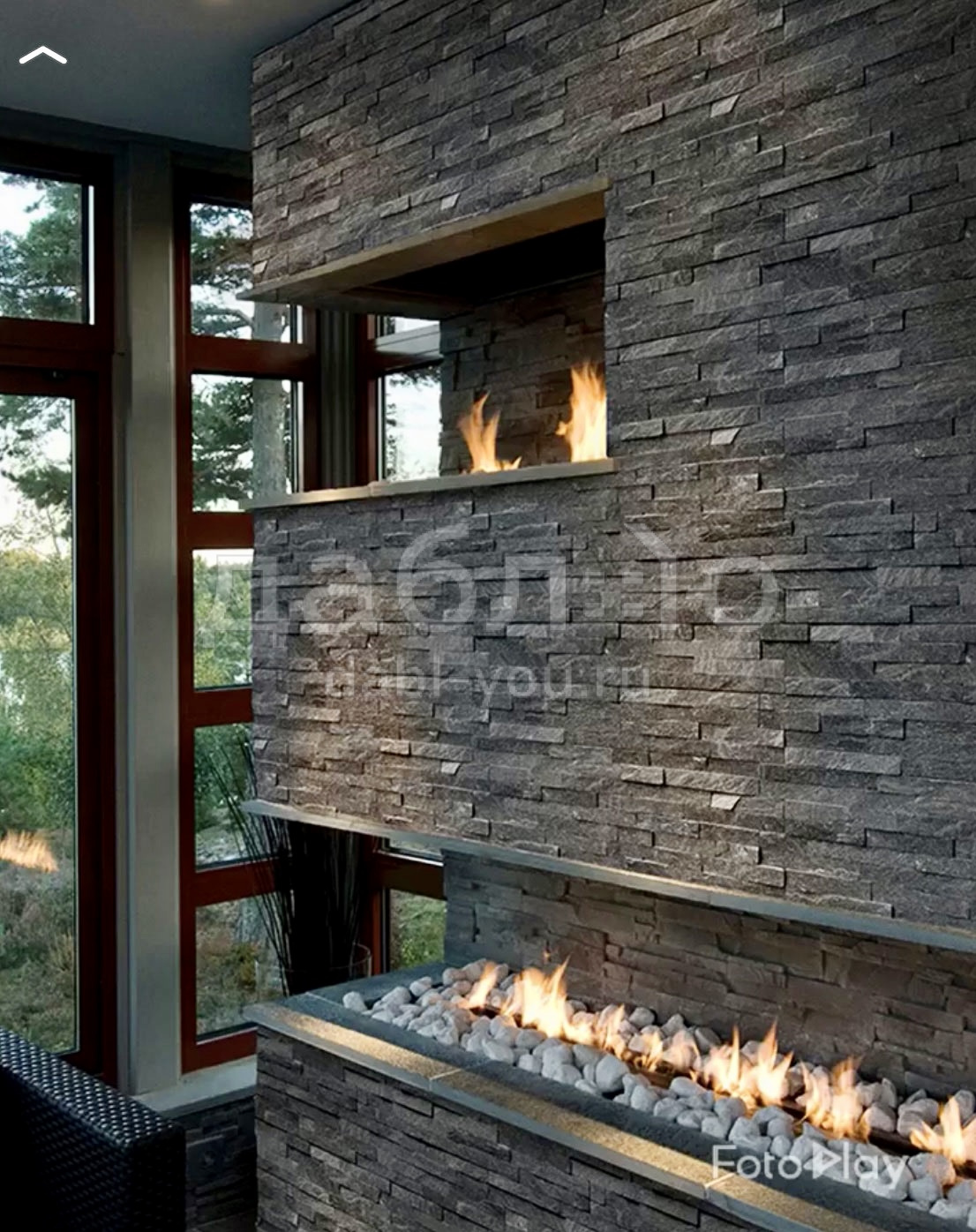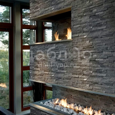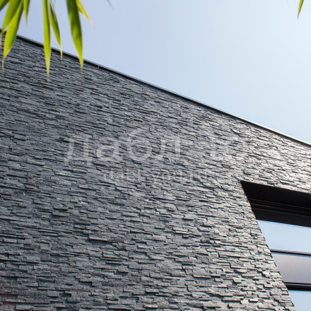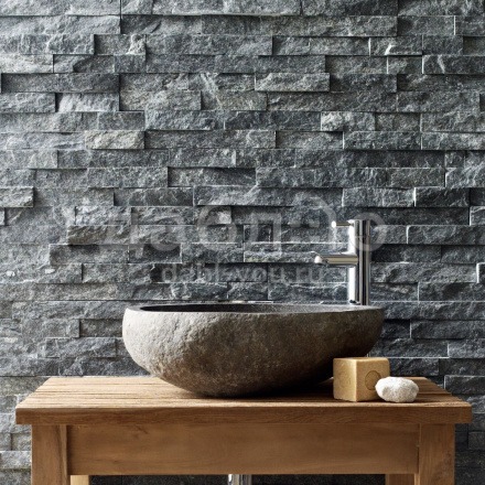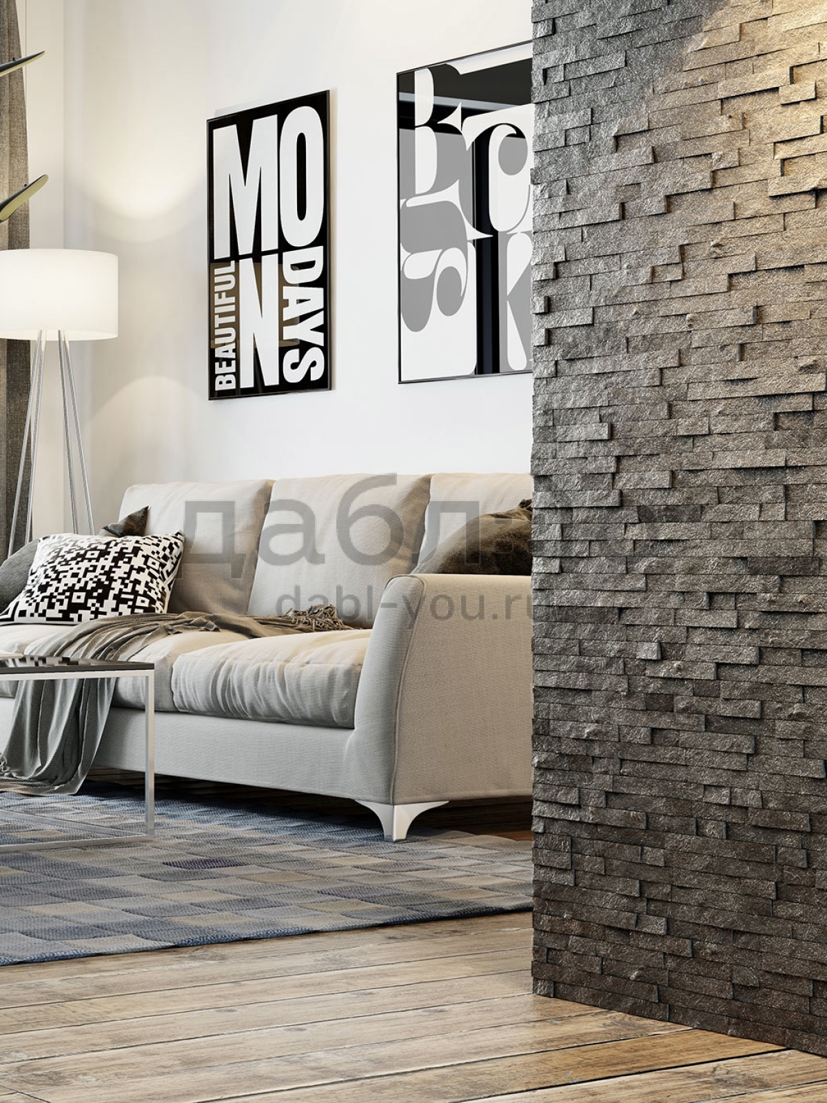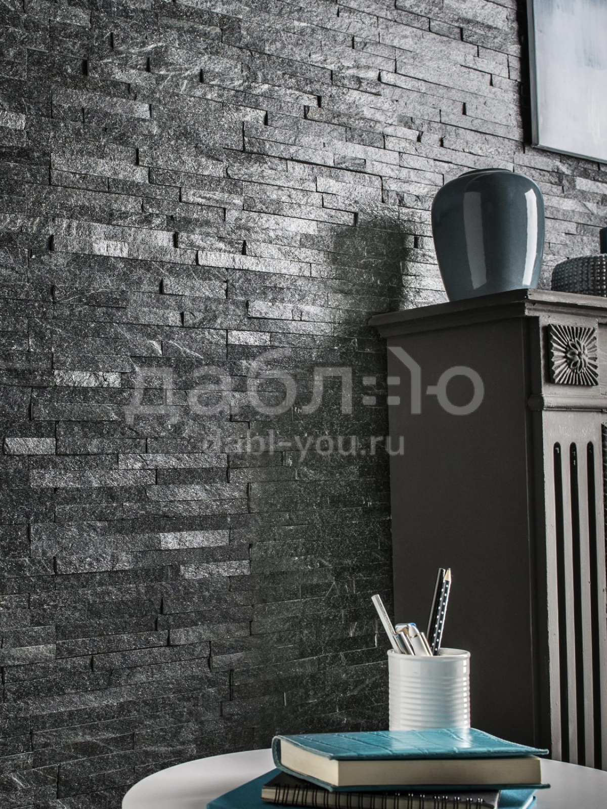 Панель из натурального камня Классик Кварцит черный. Данная панель представляет собой единую плитку, состоящую из склеенных кусочков натурального камня. Благодаря неровной поверхности достигается "объем" природного материала. Эти панели представлены в различных цветах и размерах, что дает возможность подобрать материал на Ваш вкус и цвет.- Длина: 600 мм