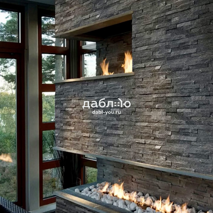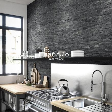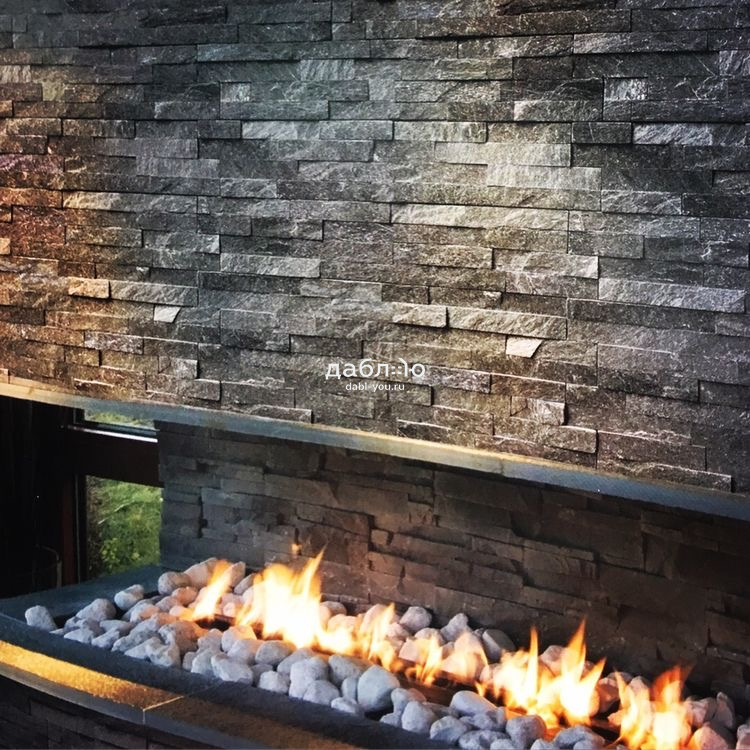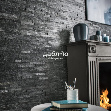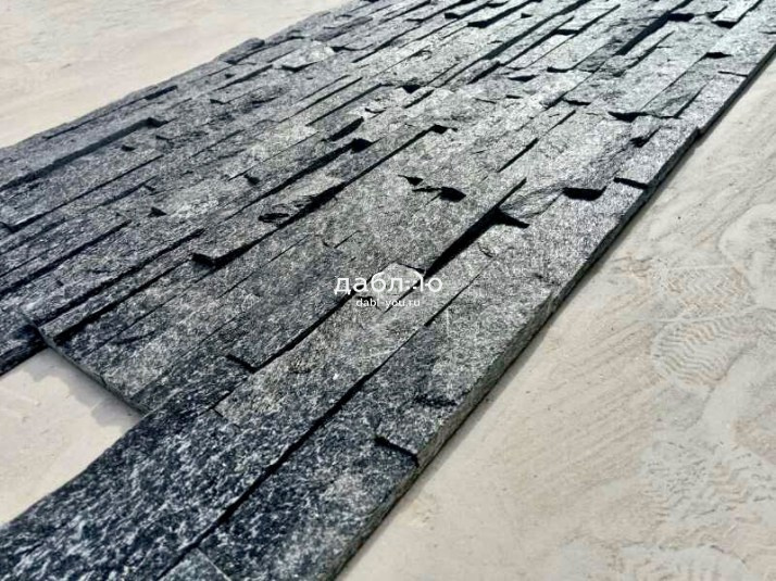 Панель из натурального камня Классик Кварцит черный. Данная панель представляет собой единую плитку, состоящую из склеенных кусочков натурального камня. Благодаря неровной поверхности достигается "объем" природного материала. Эти панели представлены в различных цветах и размерах, что дает возможность подобрать материал на Ваш вкус и цвет.Длина: 600 мм