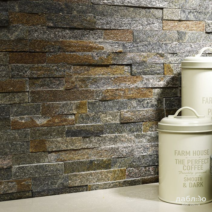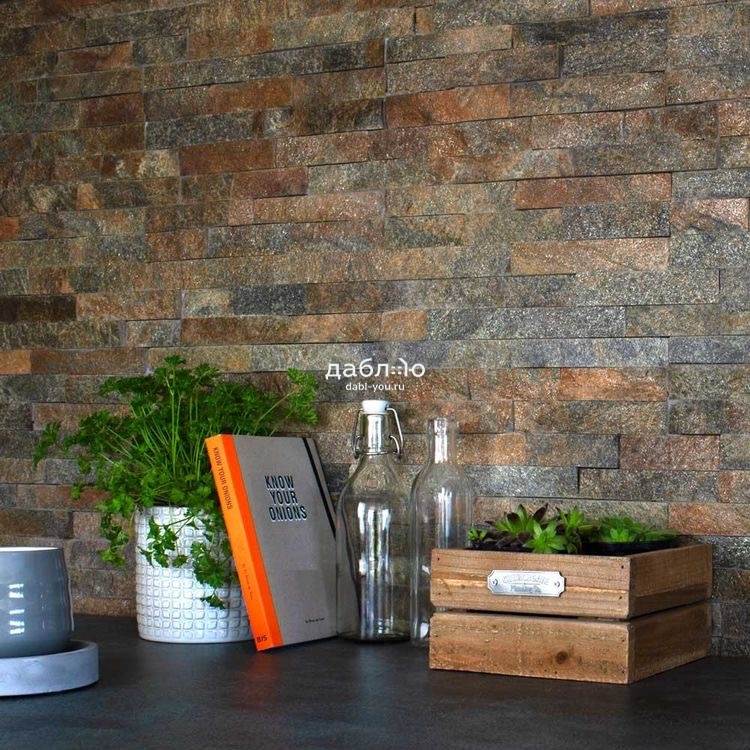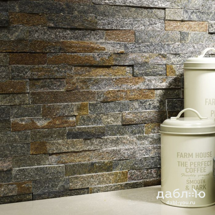 Панель из натурального камня Классик Кварцит мультиколор. Данная панель представляет собой единую плитку, состоящую из склеенных кусочков натурального камня. Благодаря неровной поверхности достигается "объем" природного материала. Эти панели представлены в различных цветах и размерах, что дает возможность подобрать материал на Ваш вкус и цвет.Длина: 600 мм