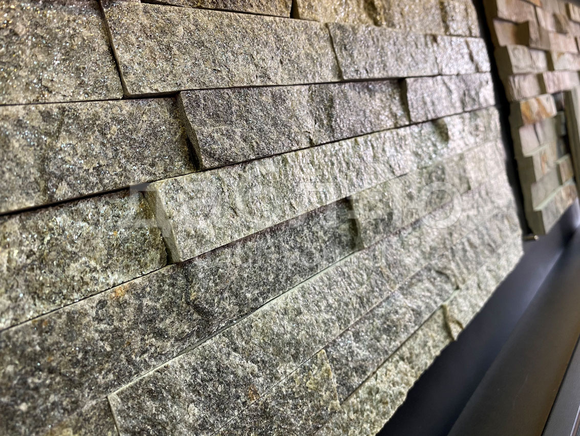 Панель из натурального камня Классик Кварцит зеленый. Данная панель представляет собой единую плитку, состоящую из склеенных кусочков натурального камня. Благодаря неровной поверхности достигается "объем" природного материала. Эти панели представлены в различных цветах и размерах, что дает возможность подобрать материал на Ваш вкус и цвет.- Длина: 600 мм
