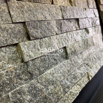 Панель из натурального камня Классик Кварцит зеленый. Данная панель представляет собой единую плитку, состоящую из склеенных кусочков натурального камня. Благодаря неровной поверхности достигается "объем" природного материала. Эти панели представлены в различных цветах и размерах, что дает возможность подобрать материал на Ваш вкус и цвет.Длина: 600 мм