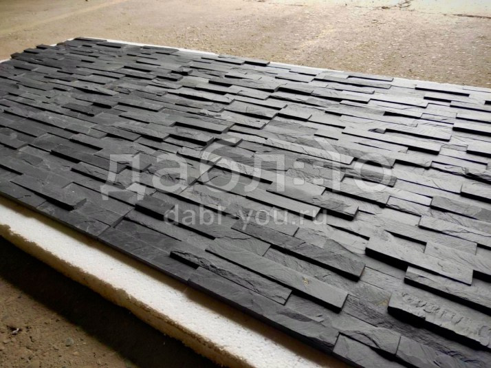 Панель из натурального камня Классик Сланец черный. Данная панель представляет собой единую плитку, состоящую из склеенных кусочков натурального камня. Благодаря неровной поверхности достигается "объем" природного материала. Эти панели представлены в различных цветах и размерах, что дает возможность подобрать материал на Ваш вкус и цвет.- Длина: 600 мм