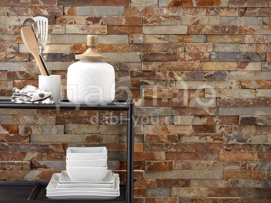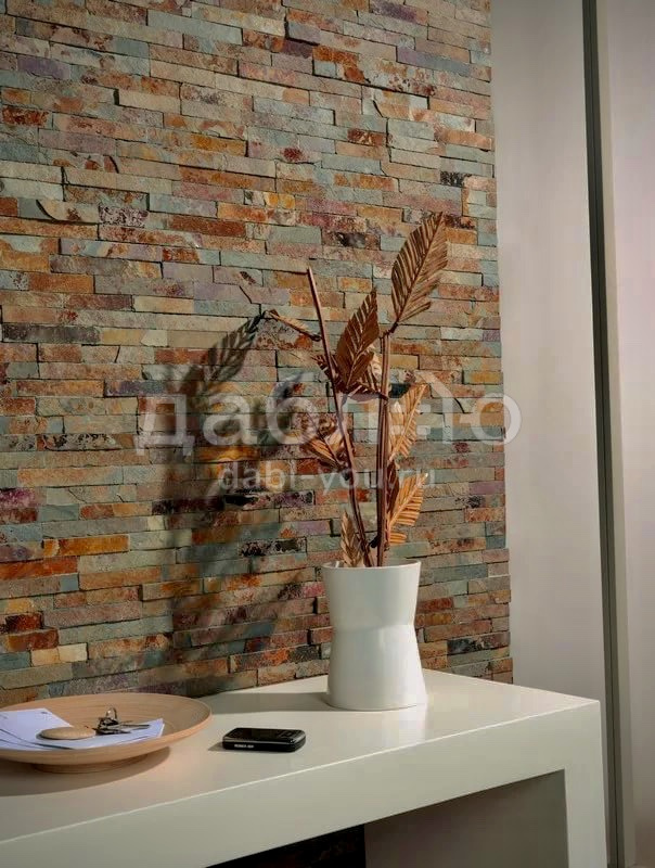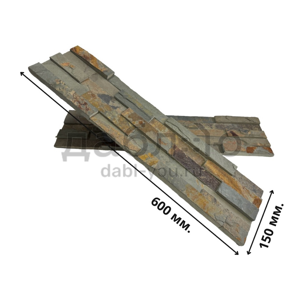 Панель из натурального камня Классик Сланец мультиколор. Данная панель представляет собой единую плитку, состоящую из склеенных кусочков натурального камня. Благодаря неровной поверхности достигается "объем" природного материала. Эти панели представлены в различных цветах и размерах, что дает возможность подобрать материал на Ваш вкус и цвет.- Длина: 600 мм