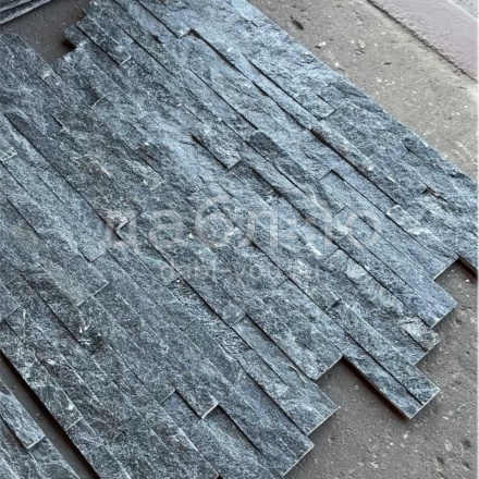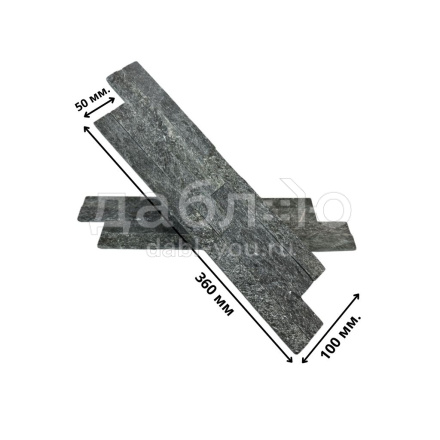 Панель из натурального камня Лайт Кварцит чёрный. Данная панель представляет собой единую плитку, состоящую из склеенных кусочков натурального камня. Благодаря неровной поверхности достигается "объем" природного материала. Эти панели представлены в различных цветах и размерах, что дает возможность подобрать материал на Ваш вкус и цвет.- Длина: 360 мм
