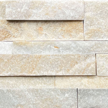 Панель из натурального камня Модерн Кварцит бежевый. Данная панель представляет собой единую плитку, состоящую из склеенных кусочков натурального камня. Благодаря неровной поверхности достигается "объем" природного материала. Эти панели представлены в различных цветах, что дает возможность подобрать материал на Ваш вкус и цвет.Длина: 350 мм