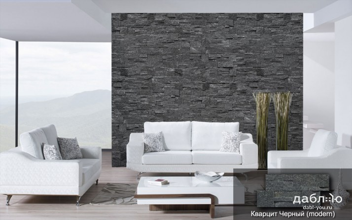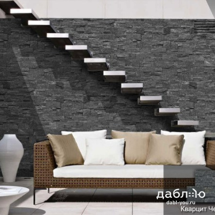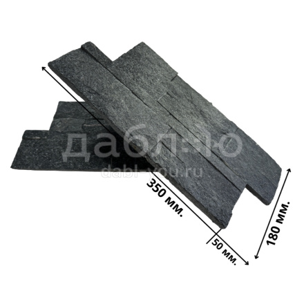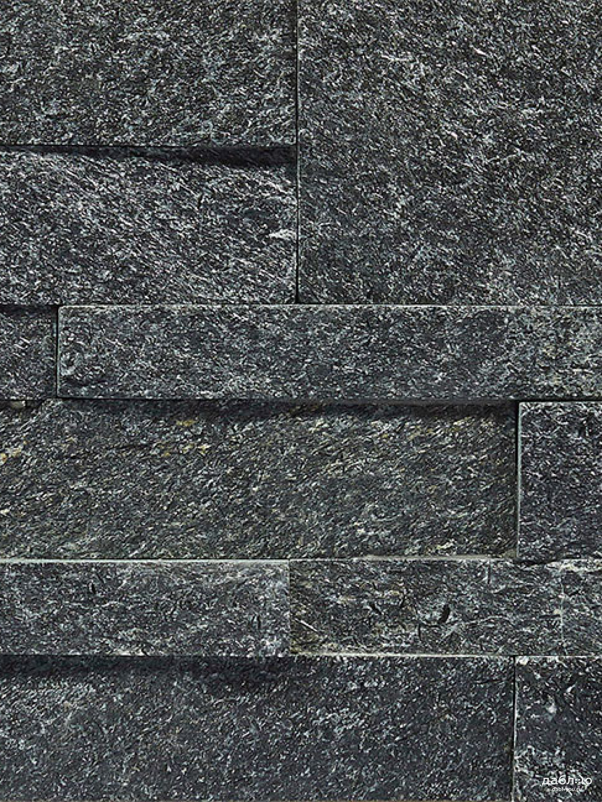 Панель из натурального камня Модерн Кварцит черный. Данная панель представляет собой единую плитку, состоящую из склеенных кусочков натурального камня. Благодаря неровной поверхности достигается "объем" природного материала. Эти панели представлены в различных цветах, что дает возможность подобрать материал на Ваш вкус и цвет.Длина: 350 мм