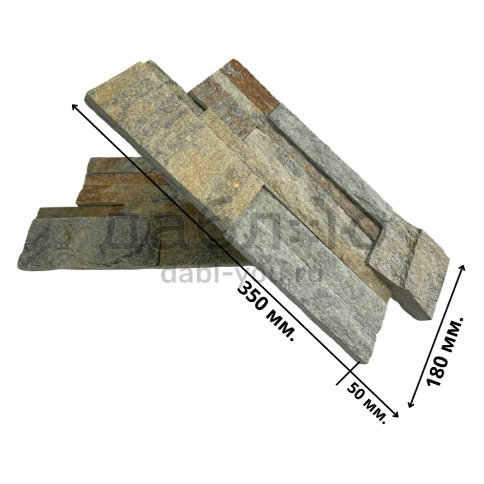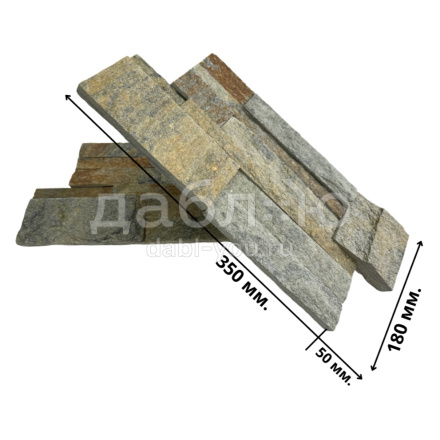 Панель из натурального камня Модерн Кварцит серо-зелёный. Данная панель представляет собой единую плитку, состоящую из склеенных кусочков натурального камня. Благодаря неровной поверхности достигается "объем" природного материала. Эти панели представлены в различных цветах, что дает возможность подобрать материал на Ваш вкус и цвет.- Длина: 350 мм