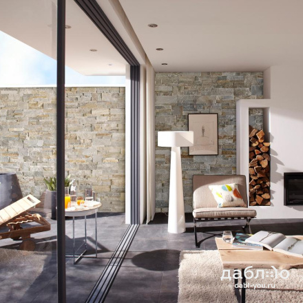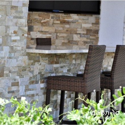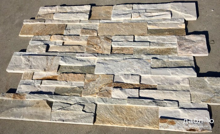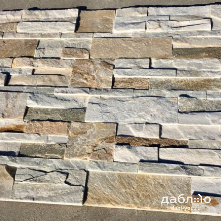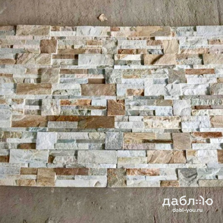 Панель из натурального камня Модерн Сланец бежевый. Данная панель представляет собой единую плитку, состоящую из склеенных кусочков натурального камня. Благодаря неровной поверхности достигается "объем" природного материала. Эти панели представлены в различных цветах, что дает возможность подобрать материал на Ваш вкус и цвет.Длина: 350 мм