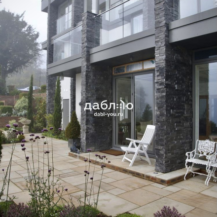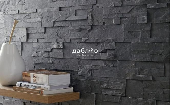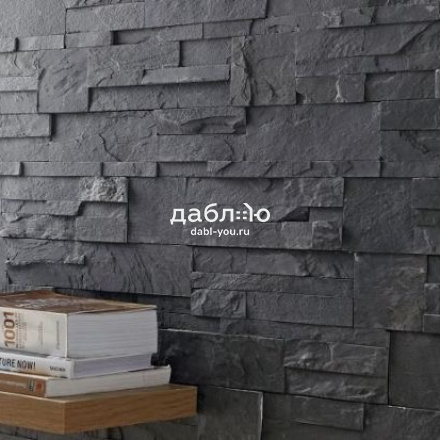 Панель из натурального камня Модерн Сланец черный. Данная панель представляет собой единую плитку, состоящую из склеенных кусочков натурального камня. Благодаря неровной поверхности достигается "объем" природного материала. Эти панели представлены в различных цветах, что дает возможность подобрать материал на Ваш вкус и цвет.Длина: 350 мм