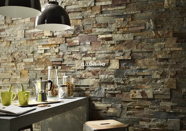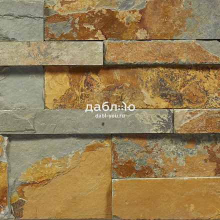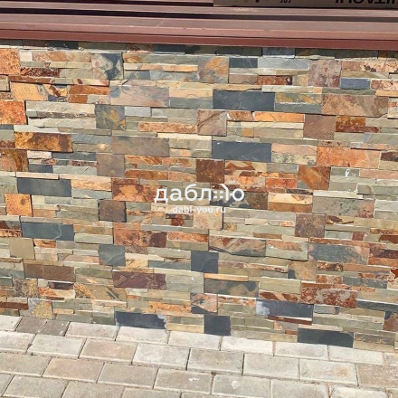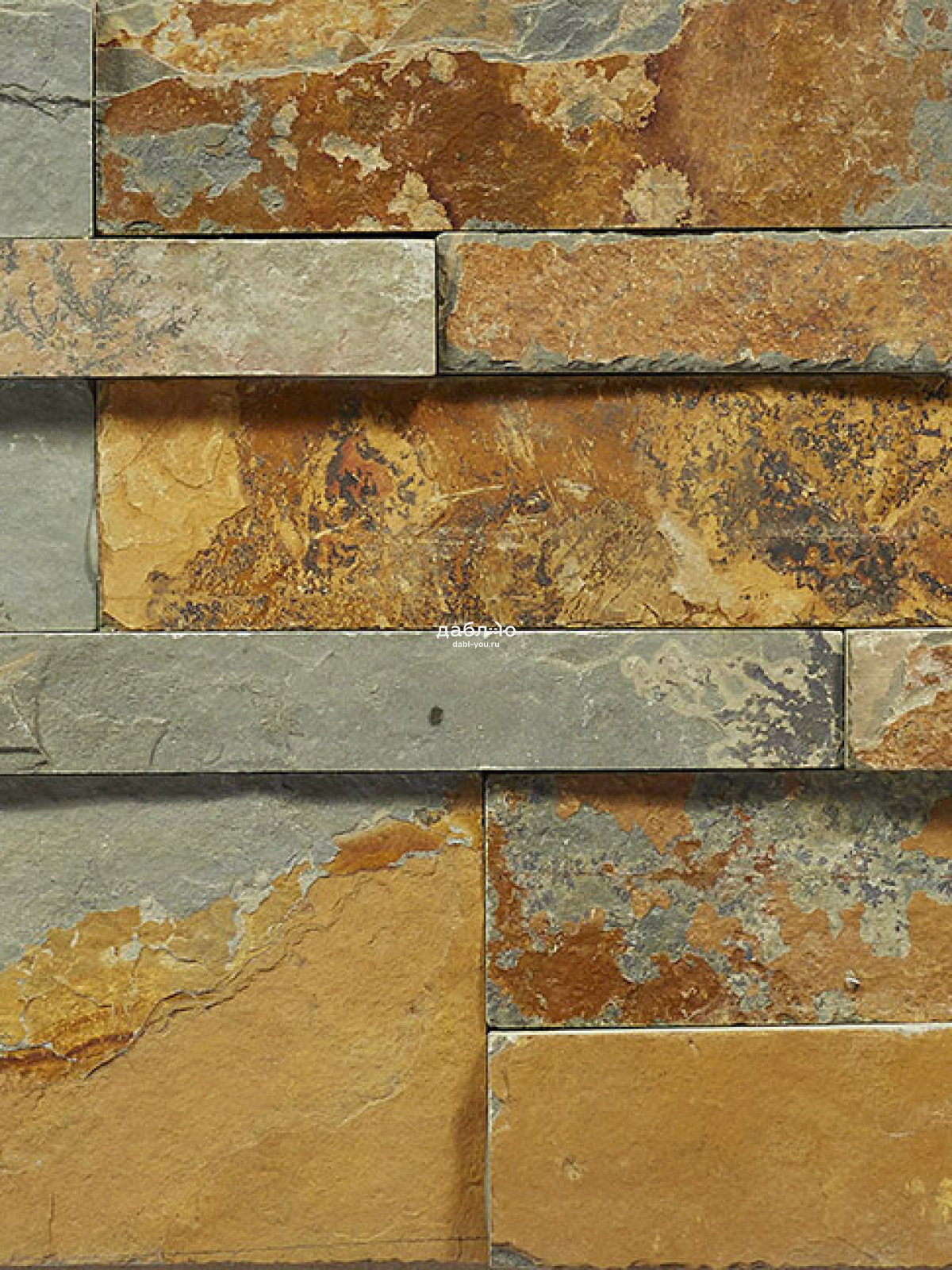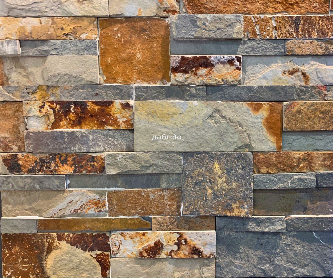Панель из натурального камня Модерн Сланец мультиколор. Данная панель представляет собой единую плитку, состоящую из склеенных кусочков натурального камня. Благодаря неровной поверхности достигается "объем" природного материала. Эти панели представлены в различных цветах, что дает возможность подобрать материал на Ваш вкус и цвет.Длина: 350 мм