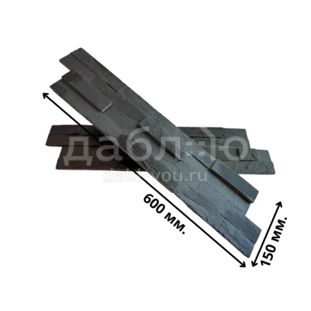 Панель из натурального камня Неоклассик Сланец чёрный. Данная панель представляет собой единую плитку, состоящую из склеенных кусочков натурального камня. Благодаря неровной поверхности достигается "объем" природного материала. Эти панели представлены в различных цветах и размерах, что дает возможность подобрать материал на Ваш вкус и цвет.- Длина: 600 мм