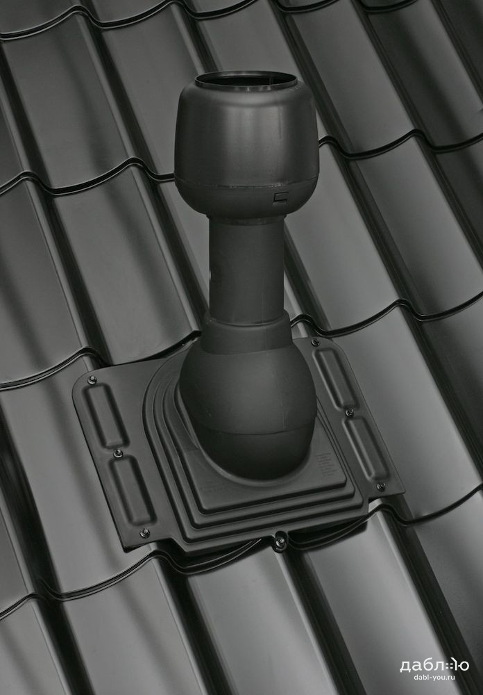 Pelti проходной элемент для монтажа на металлочерепице труб и вентиляторов диаметром 110 –160 мм и антенного ворота. Герметичность монтажа обеспечивается резиновым уплотнителем, легко формуемым по профилю металлочерепицы благодаря слою алюминия на фланце уплотнителя. Не применим для металлочерепицы с трапециевидным профилем выше 38 мм.Проходной элемент для металлочерепицы с высотой профиля до 38 мм. Устанавливается при монтаже и на готовую кровлю.