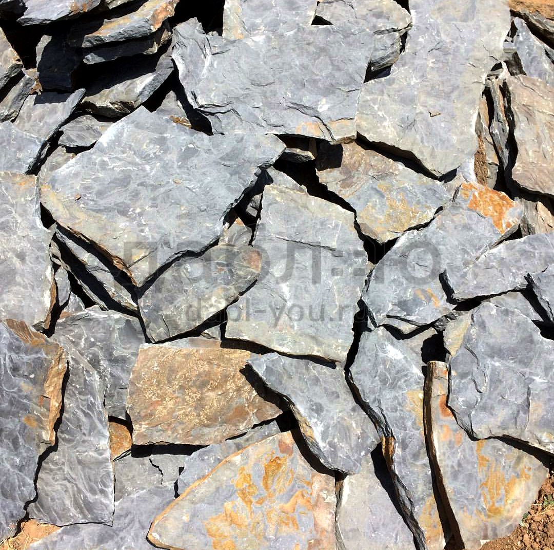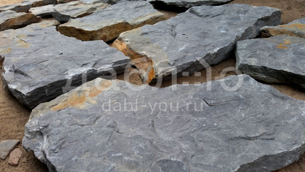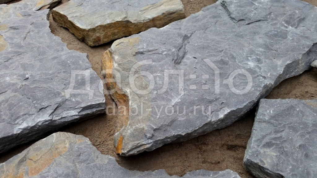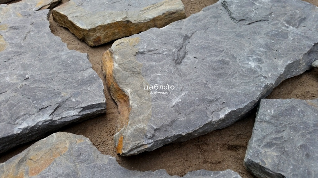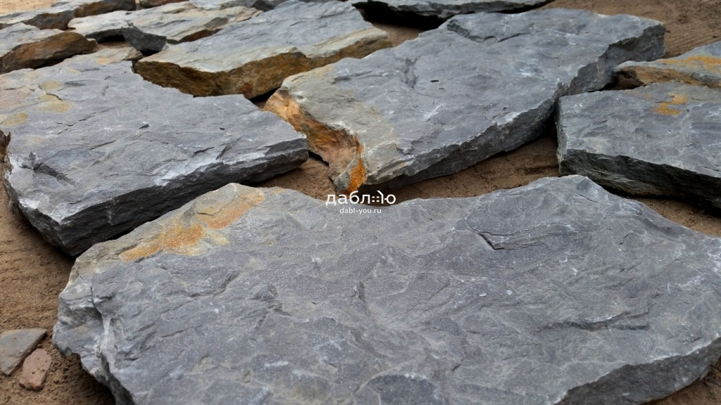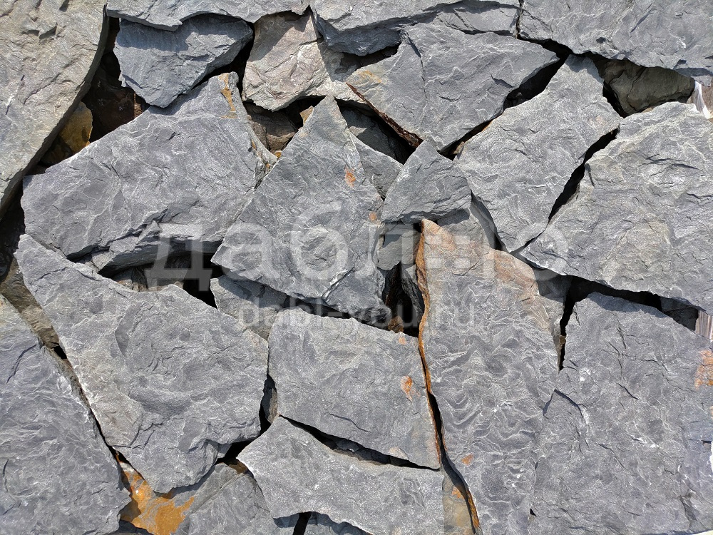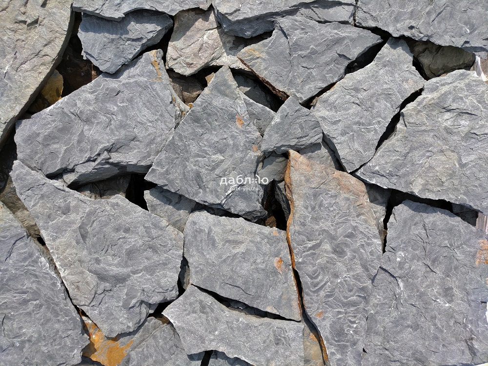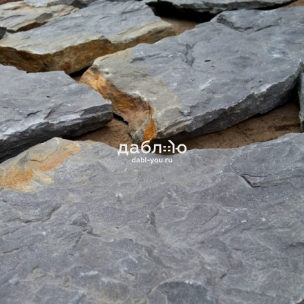 Песчаник Дракон синий рваный край 20-40 мм. Отличается чешуйчатой бугристой поверхностью, узор которой никогда не повторится. Декорация интерьера или облицовка фасада будет эксклюзивной.- Вес: 76 кг/м2
