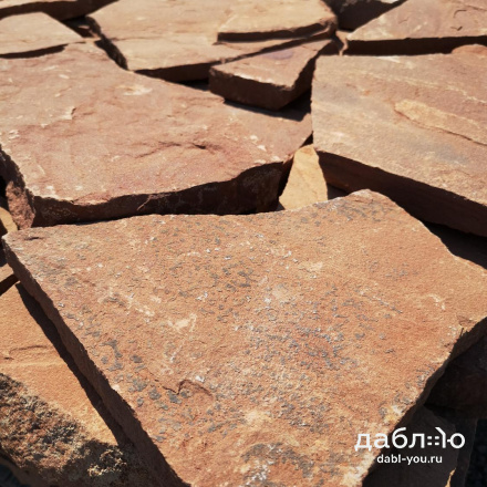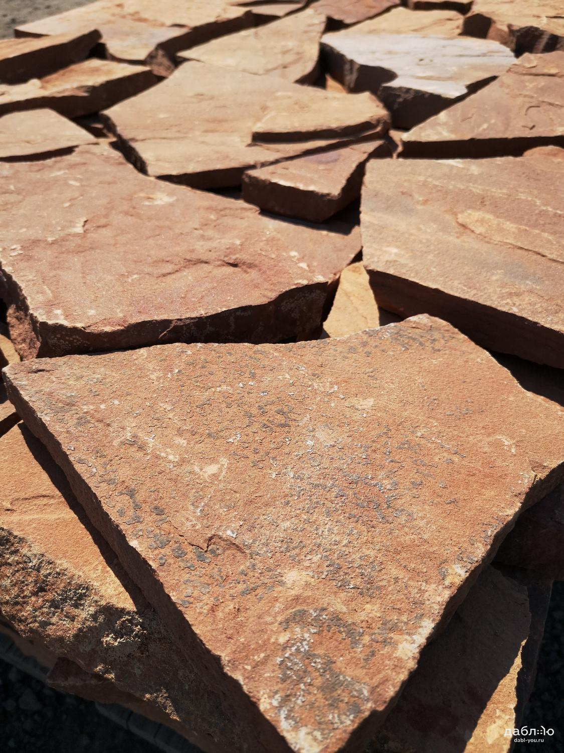 Песчаник красный рваный край 20 мм. Природный камень имеет натуральный цвет, который не тускнеет при воздействиях атмосферных явлений. Морозостойкий и прочный материал, который используется для облицовки цоколей и фасадов.- Вес: 45 кг/м2