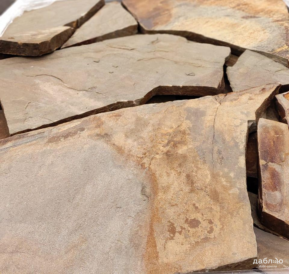 Песчаник опавшая листва рваный край 20 мм. Красивый песчаник с ярким и выразительным оттенком. Обладает высокой прочностью и будет отлично смотреться в качестве строительного материала на вашем фасаде.Толщины: 20 мм