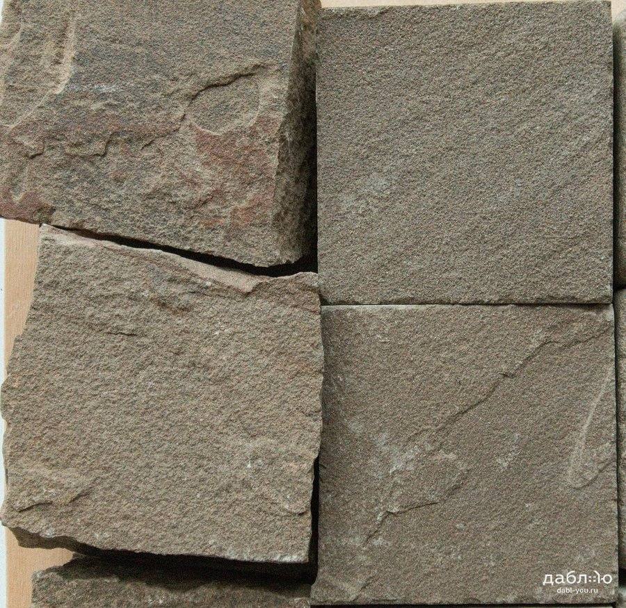 Песчаник серо-зеленый брусчатка колотая 100х100х40 мм