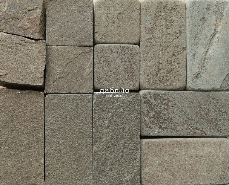 Песчаник серо-зеленый брусчатка пиленая 100x200x40 мм