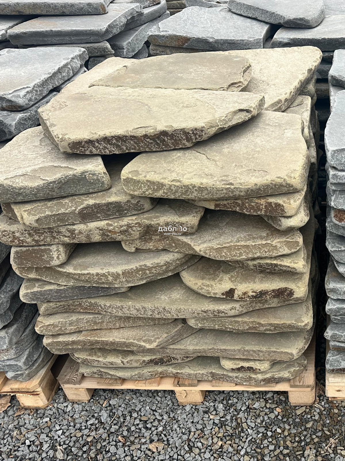 Песчаник серо-зеленый рваный край галтованный 50 мм