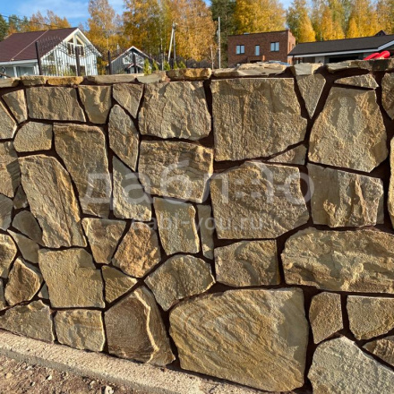 Песчаник тигровый рваный край 30 мм. Красивый песчаник с ярким и выразительным рисунком. Обладает высокой прочностью и будет отлично смотреться в качестве строительного материала на вашем фасаде.- Вес: 73,1 кг м2