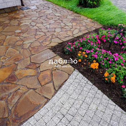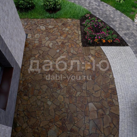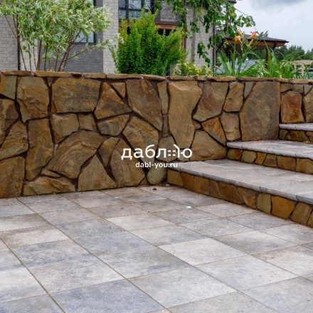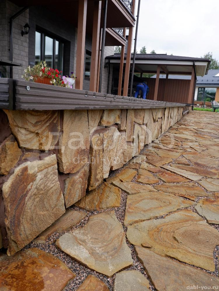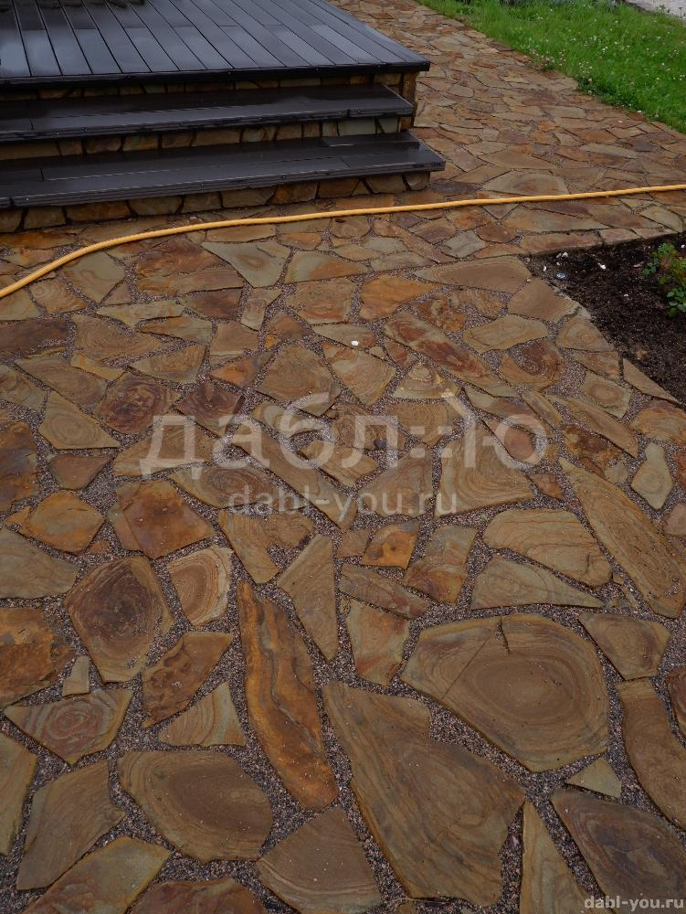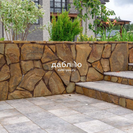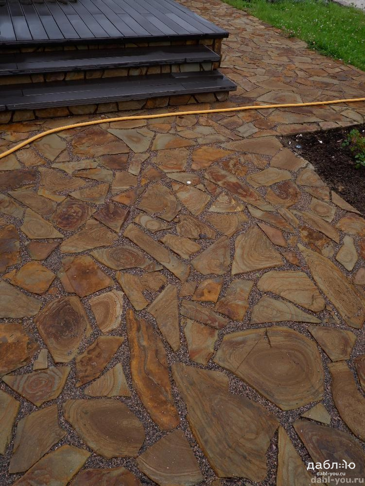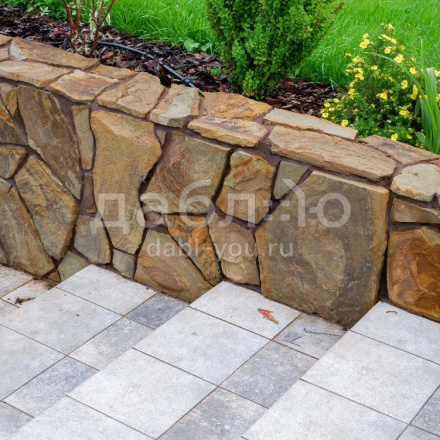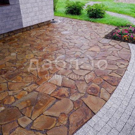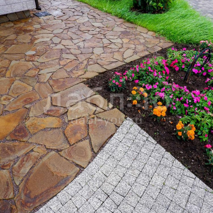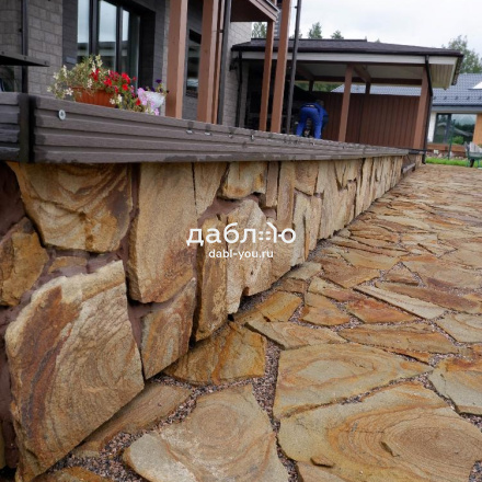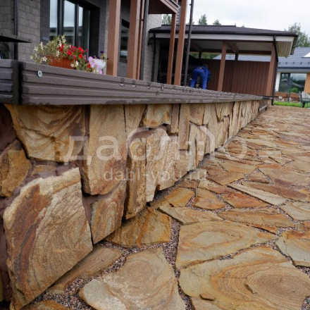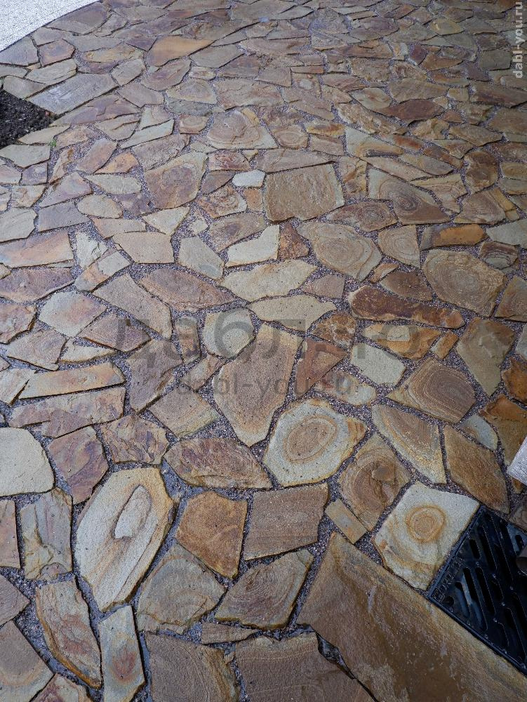 Песчаник тигровый рваный край 40 мм. Очень прочный камень с привлекательной расцветкой. Природный камень с толщиной 40 мм используют в качестве материала для садовых дорожек и парковочных зон. Отлично сочетается со многими материалами.- Вес: 100 кг м2