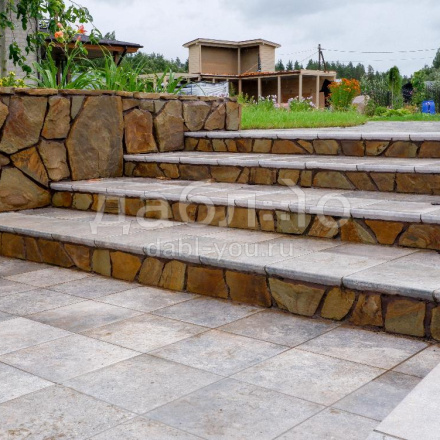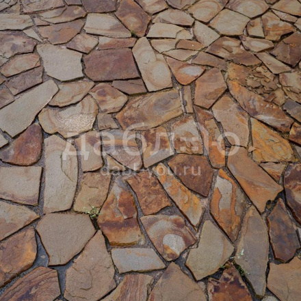 Песчаник тигровый рваный край 50 мм. Песчаник считается одним из самых крепких натуральных камней, поэтому его чаще всего выбирают для строительства и облагораживания загородных домов. Тигровый песчаник выгодно выделяется своим ярким рисунком и будет прекрасно смотреться на дорожках и парковках.- Вес: 105,26 кг м2