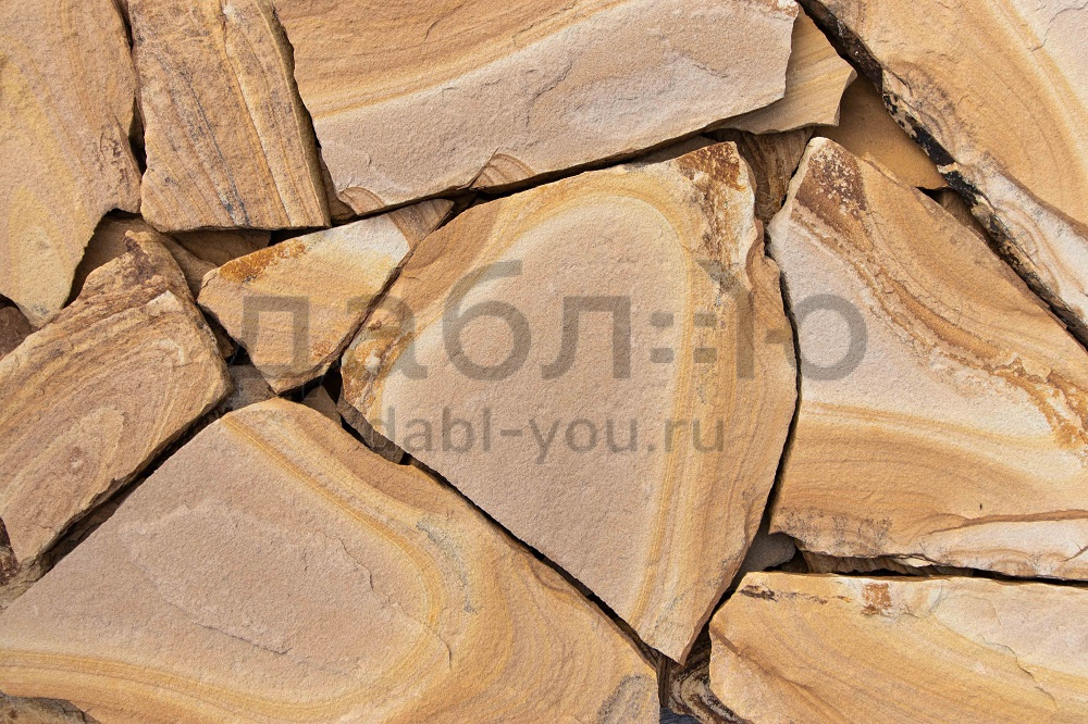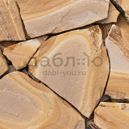 Песчаник желто-коричневый с разводами рваный край 50 мм