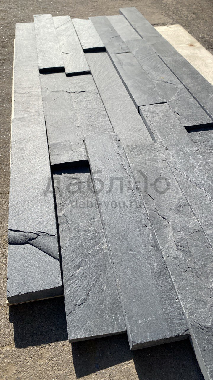 Плитка из натурального камня Сланец черный (нарезка) 300х70. Плитку из натурального камня можно использовать как на отделку стен, так и отделку пола. Это природный материал отлично украсит Ваш дом.- Длина: 300 мм