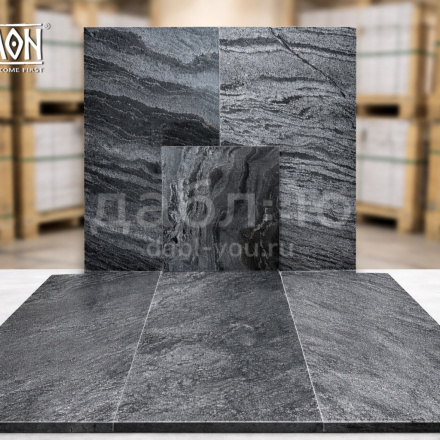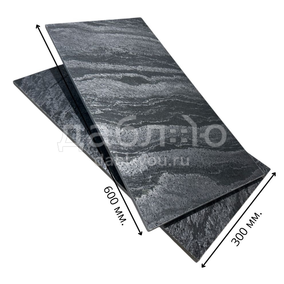 Плитка из натурального камня Сланец Сильвер Грей (полированный) 600х300