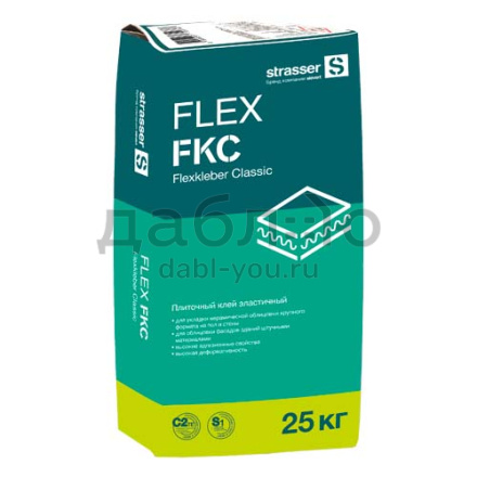 Плиточный клей эластичный (С2 ТЕ S1) strasser FLEX FKC, 25 кг. Клеевая смесь для укладки керамической плитки и керамогранита, искусственного и натурального камня крупного формата, и клинкерной плитки. Для внутреннего и наружного применения.- влажность сухой смеси: не более 0,5%