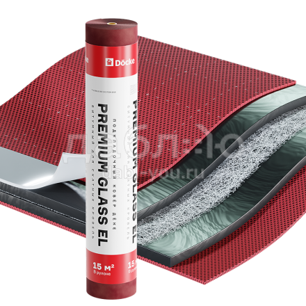 Подкладочный ковер Docke Premium Glass EL, 15 м. Подкладочный ковер представляет собой рулонный битумный материал, который укладывается на жесткое сплошное основание (OSB-3 или влагостойкую фанеру ФСФ) непосредственно под финишное покрытие. Подкладочный ковер необходим на крыше любой формы, размеров и конфигурации, так как его наличие существенно увеличивает срок службы как самого финишного покрытия, так и всего кровельного конструктива.Характеристики