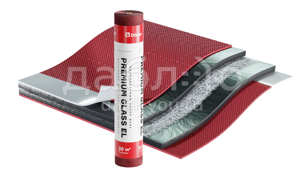 Подкладочный ковер Docke Premium Glass EL, 30 м. Подкладочный ковер представляет собой рулонный битумный материал, который укладывается на жесткое сплошное основание (OSB-3 или влагостойкую фанеру ФСФ) непосредственно под финишное покрытие. Подкладочный ковер необходим на крыше любой формы, размеров и конфигурации, так как его наличие существенно увеличивает срок службы как самого финишного покрытия, так и всего кровельного конструктива.Характеристики