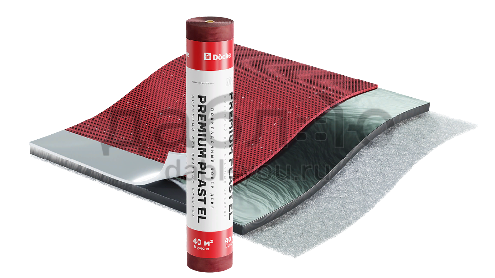 Подкладочный ковер Docke Premium Plast EL, 40 м. Подкладочный ковер представляет собой рулонный битумный материал, который укладывается на жесткое сплошное основание (OSB-3 или влагостойкую фанеру ФСФ) непосредственно под финишное покрытие. Подкладочный ковер необходим на крыше любой формы, размеров и конфигурации, так как его наличие существенно увеличивает срок службы как самого финишного покрытия, так и всего кровельного конструктива.Характеристики