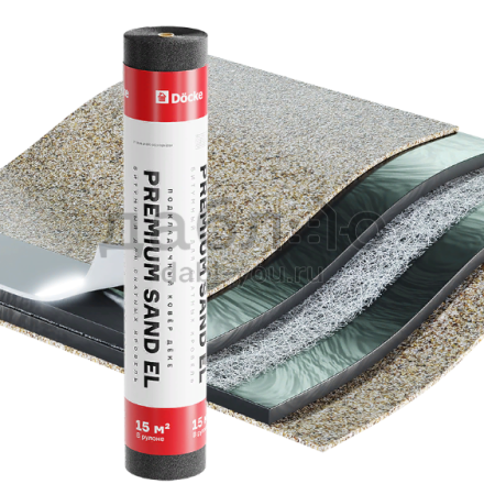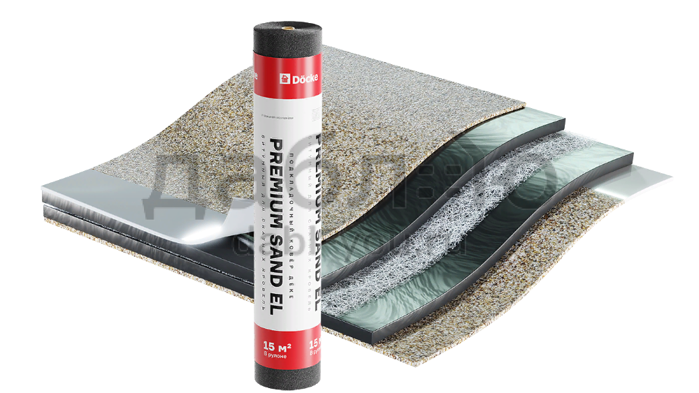 Подкладочный ковер Docke Premium Sand EL, 15 м. Подкладочный ковер представляет собой рулонный битумный материал, который укладывается на жесткое сплошное основание (OSB-3 или влагостойкую фанеру ФСФ) непосредственно под финишное покрытие. Подкладочный ковер необходим на крыше любой формы, размеров и конфигурации, так как его наличие существенно увеличивает срок службы как самого финишного покрытия, так и всего кровельного конструктива.Характеристики
