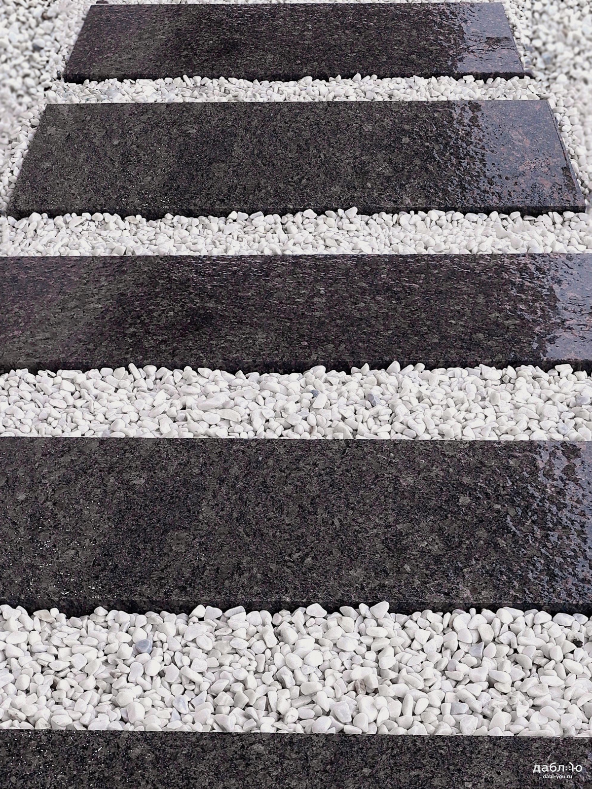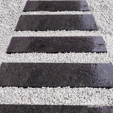 Пошаговая плита из гранита Дымовский. Применяется для создание пошаговых дорожек и в качестве элемента ландшафтного дизайна дома. Будет хорошо сочетаться с такими материалами как галька или крошка.Характеристики