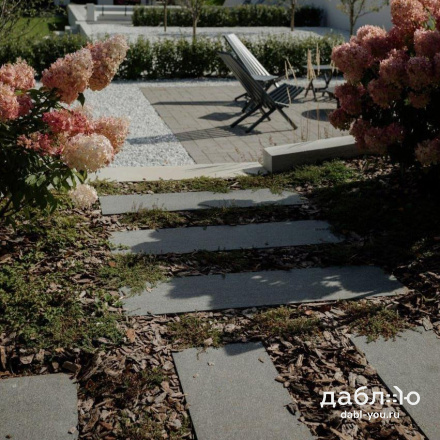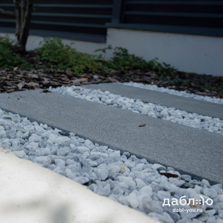 Пошаговая плита из гранита Габбро (боковые грани пиленые, верх термо), 600х300х30мм.Цвет насыщенно черно-серый