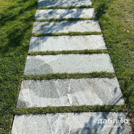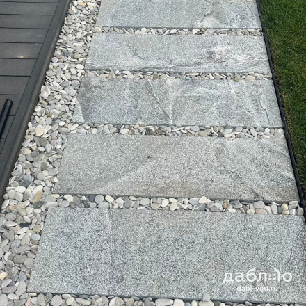 Пошаговая плита из гранита Габбро (Урал). Применяется для создание пошаговых дорожек и в качестве элемента ландшафтного дизайна дома. Будет хорошо сочетаться с такими материалами как галька или крошка.Характеристики