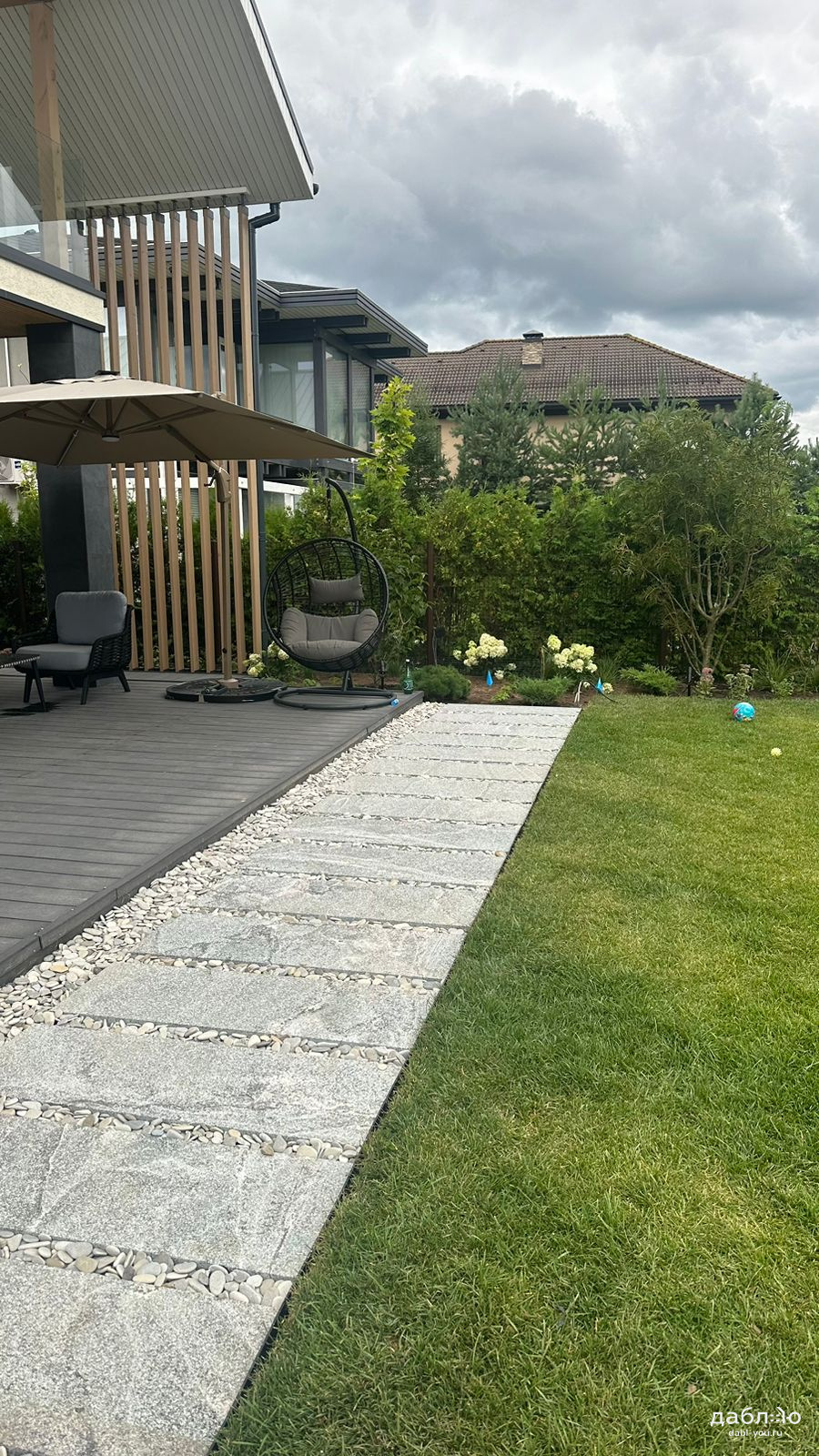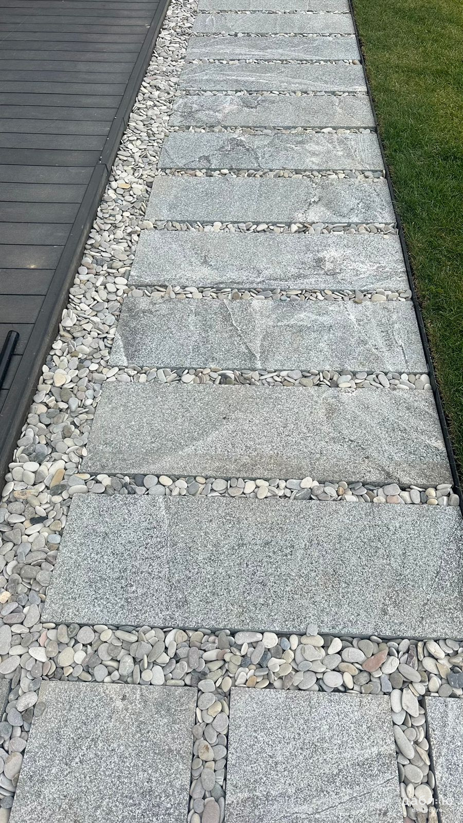 Пошаговая плита из гранита Габбро (Урал). Применяется для создание пошаговых дорожек и в качестве элемента ландшафтного дизайна дома. Будет хорошо сочетаться с такими материалами как галька или крошка.Характеристики