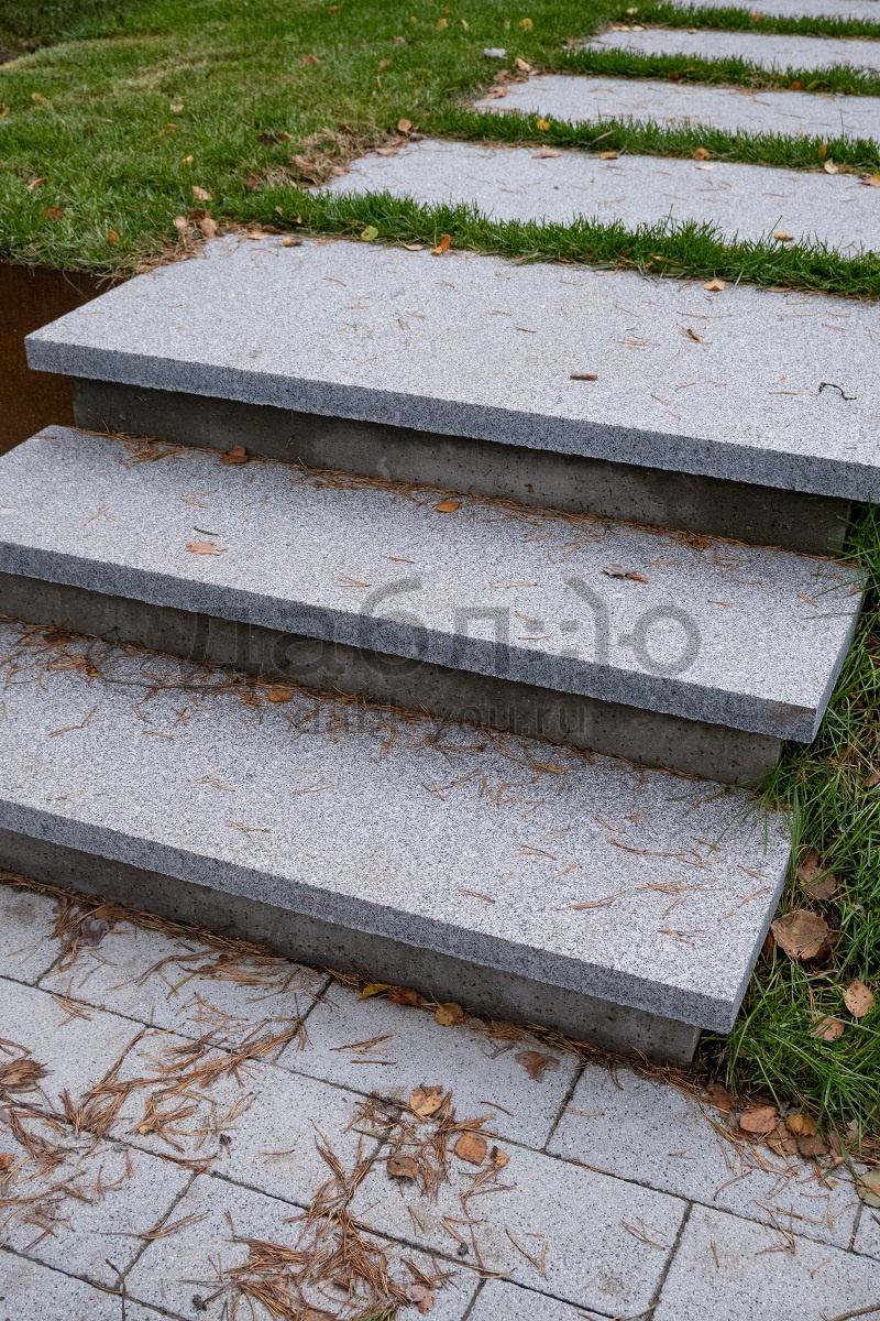 Пошаговая плита из гранита Каменногорский (боковые грани пиленые, верх термо), П*200*40мм.Цвет серый