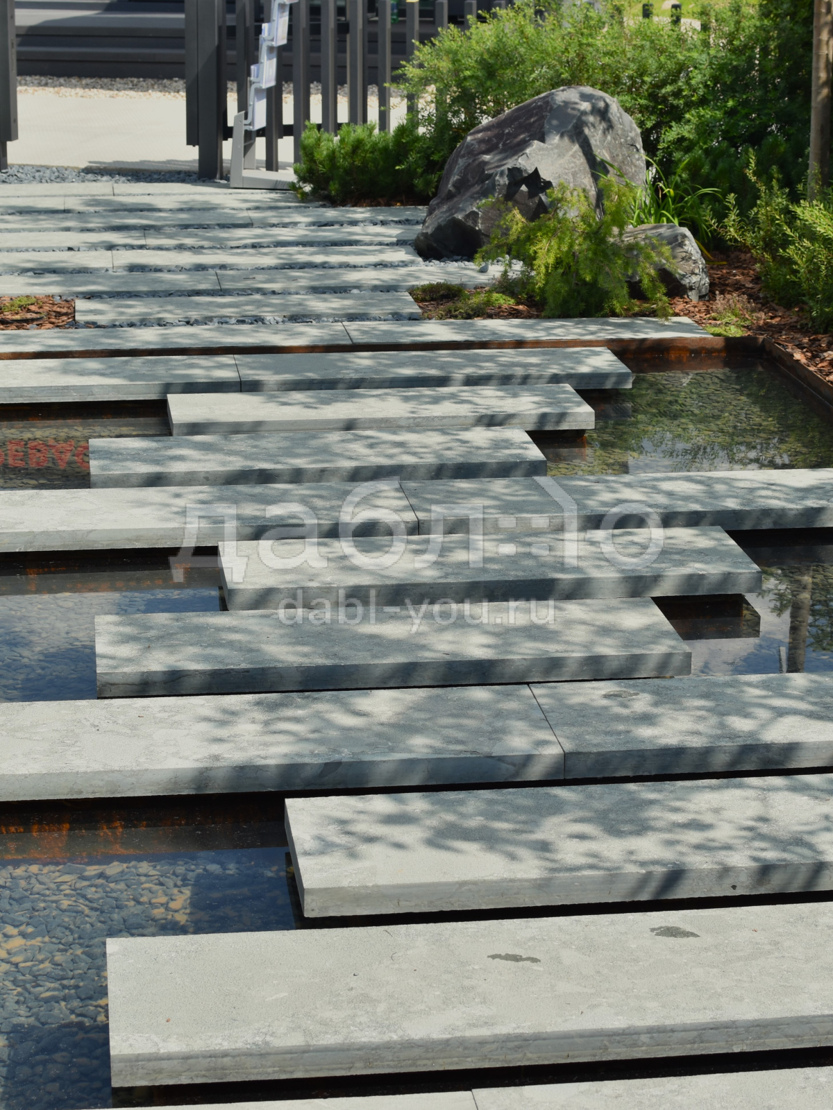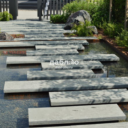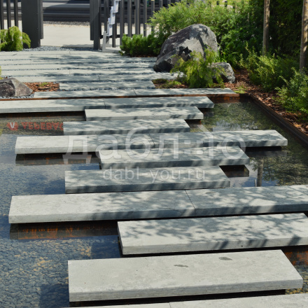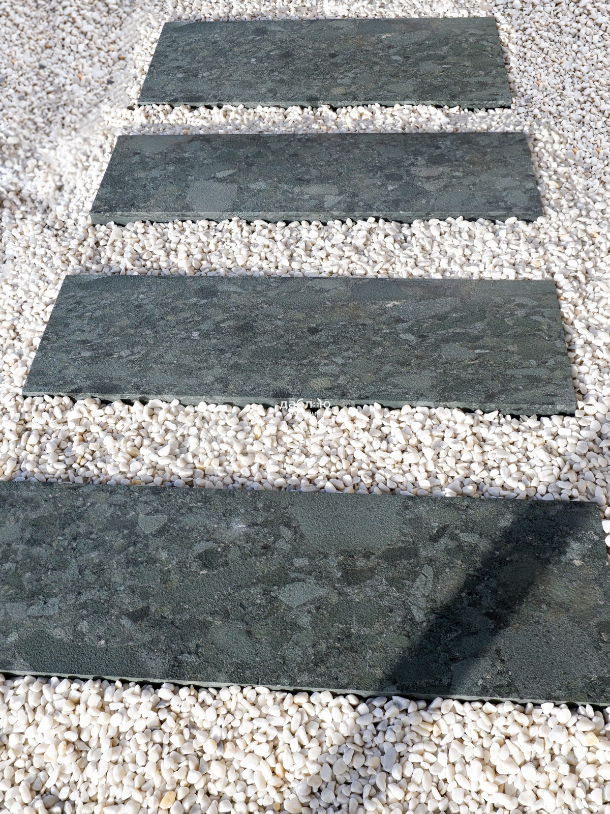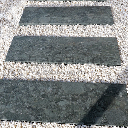 Пошаговая плита из гранита Конгломерат (Калливолампи) (боковые грани пиленые, верх бучарда), 1200*400*50мм.Цвет зеленый