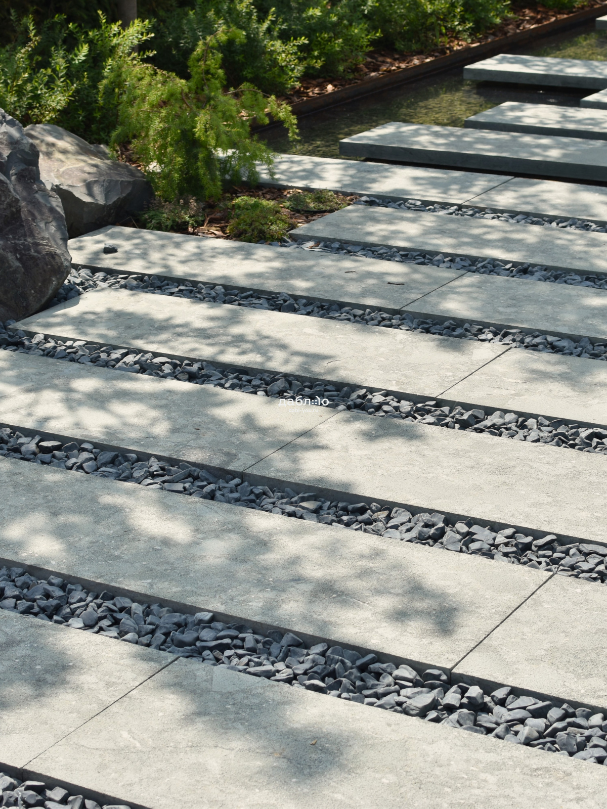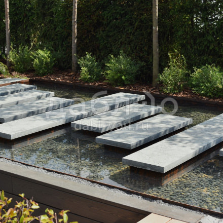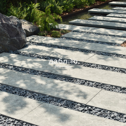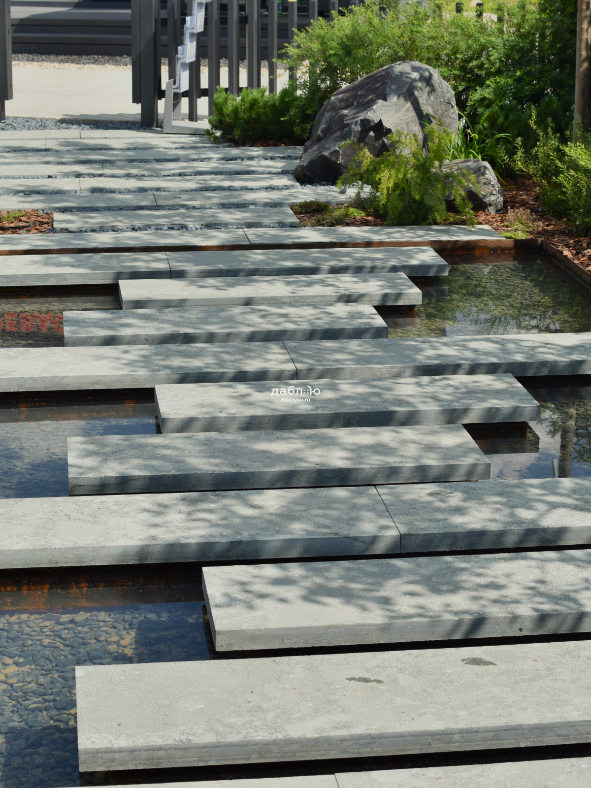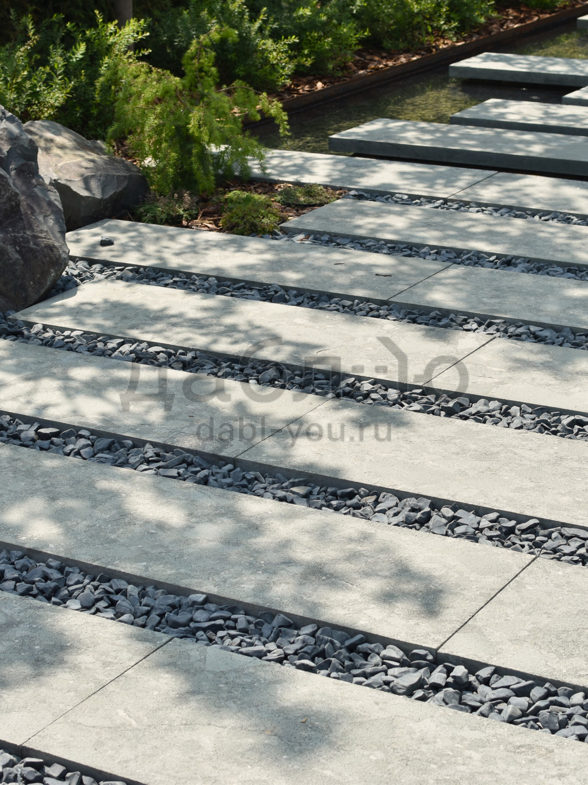 Пошаговая плита из гранита Конгломерат (Калливолампи) (боковые грани пиленые, верх бучарда), 1200*400*50мм.Цвет зеленый