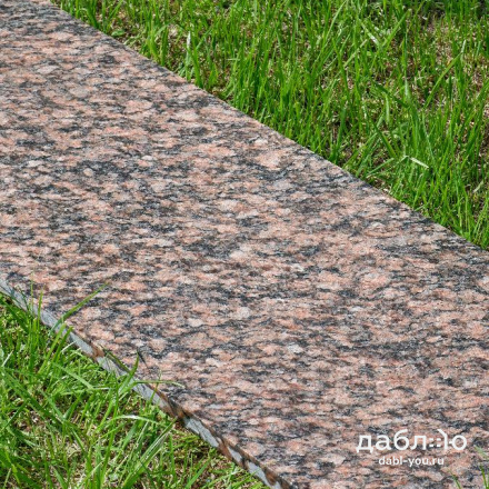 Пошаговая плита из гранита Ладожский. Применяется для создание пошаговых дорожек и в качестве элемента ландшафтного дизайна дома. Будет хорошо сочетаться с такими материалами как галька или крошка.Характеристики