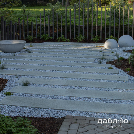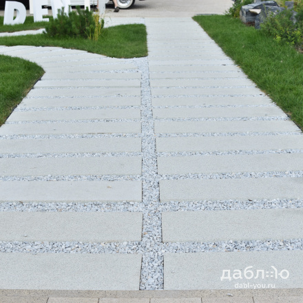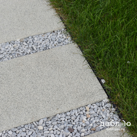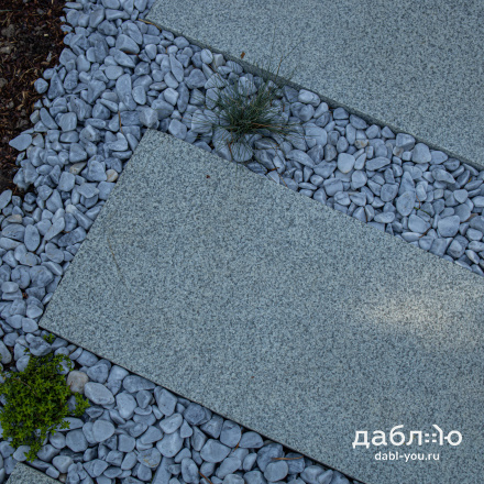 Пошаговая плита из гранита Мансуровский. Применяется для создание пошаговых дорожек и в качестве элемента ландшафтного дизайна дома. Будет хорошо сочетаться с такими материалами как галька или крошка.Характеристики